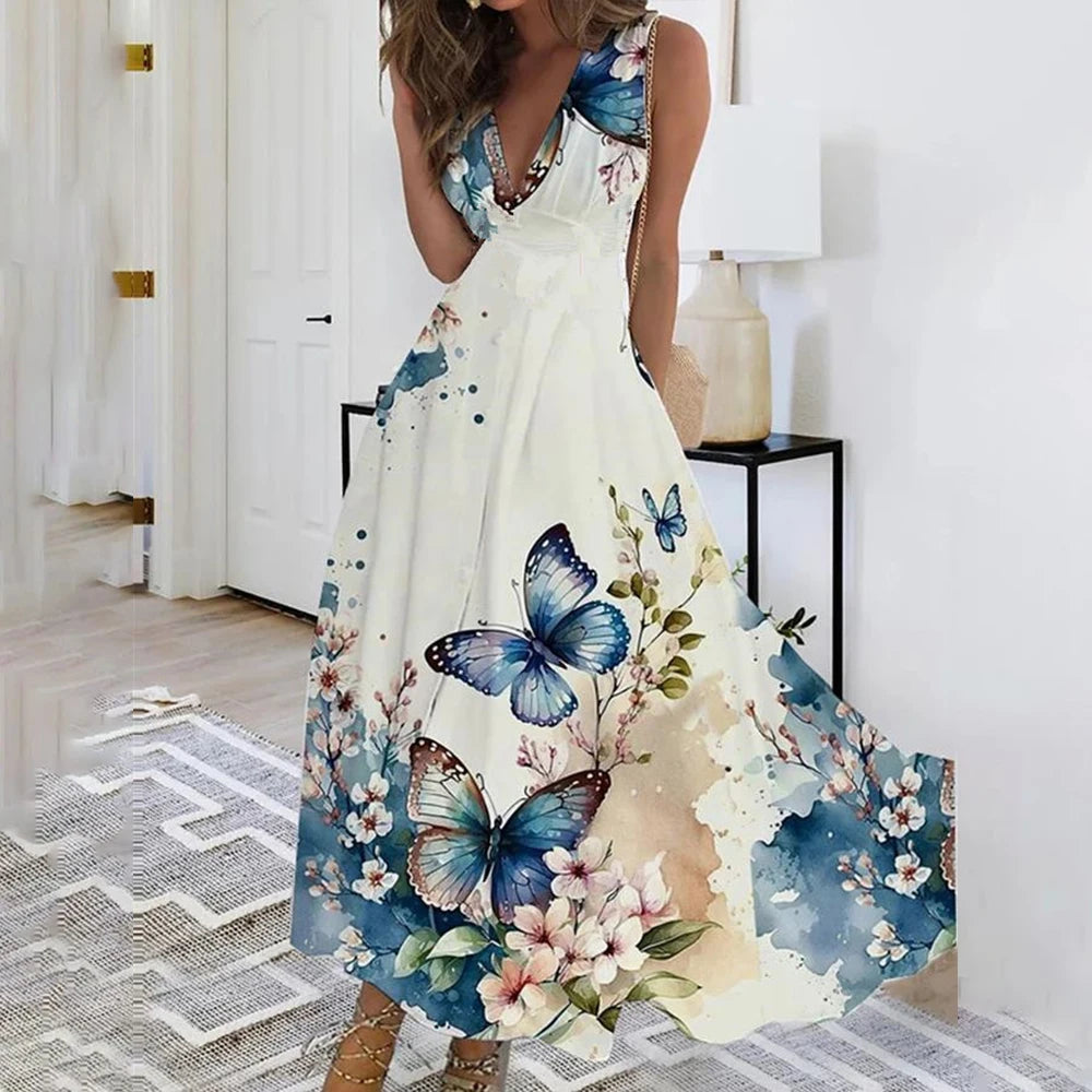 L XL Floral Summer Dress for Women Clothing 2024 Bohemian Loose Beach Sundress Midi Skirt Female Holiday Maxi Dress Vestido Robe