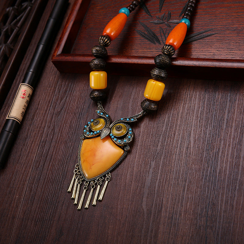 Tibetan ethnic wind wooden beads necklace sweater chain dance pendant