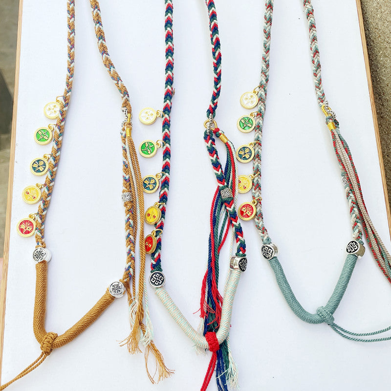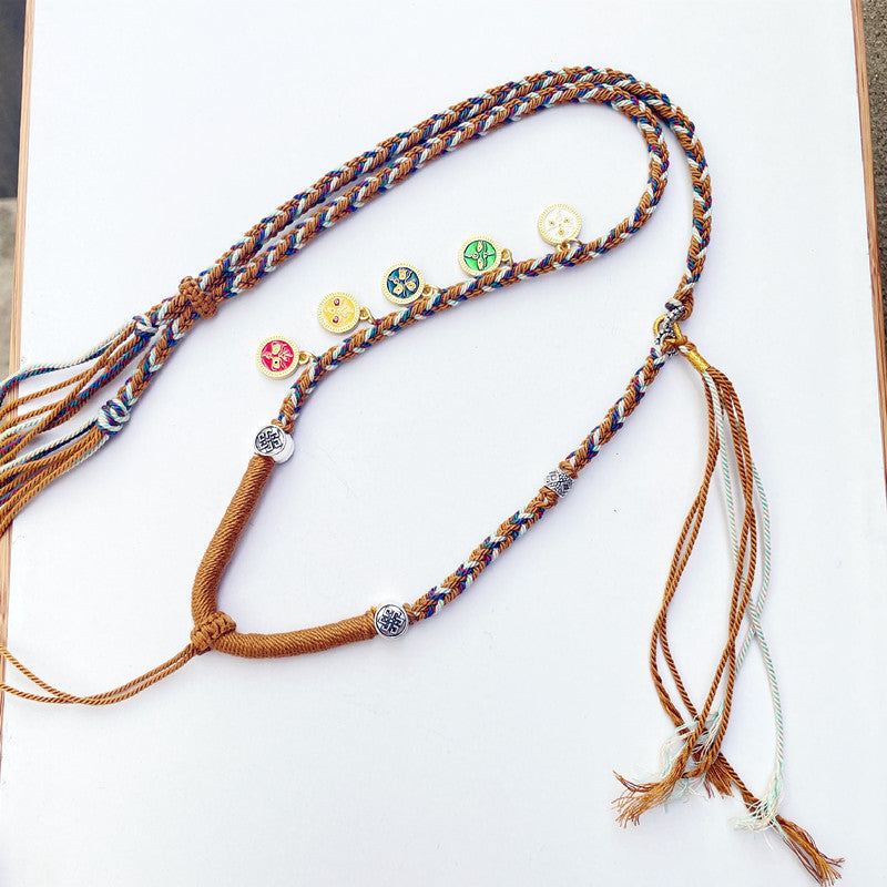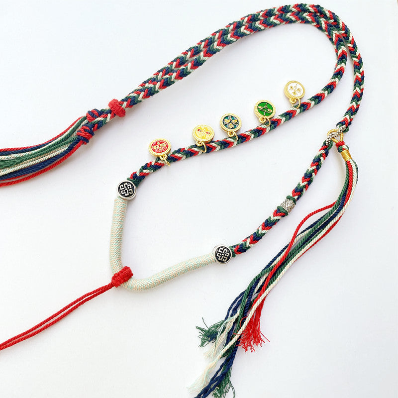 Tibetan Ethnic Style, Five-way God of Wealth Pendant Rope, Thangka Lanyard, Hand-woven Color Necklace Rope