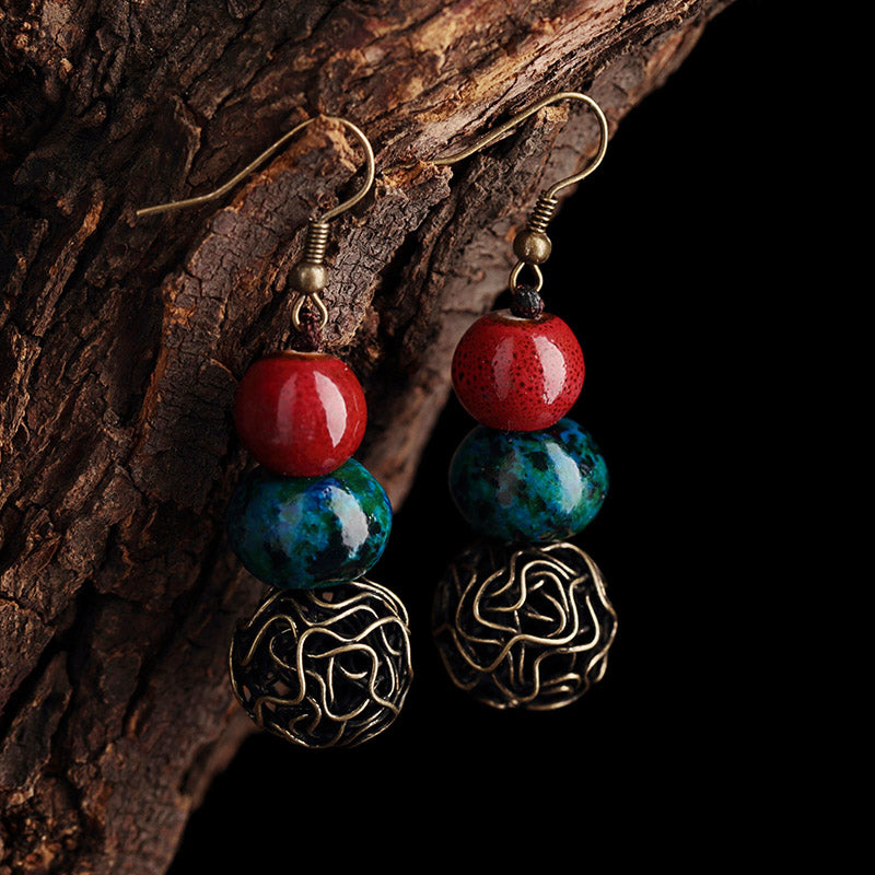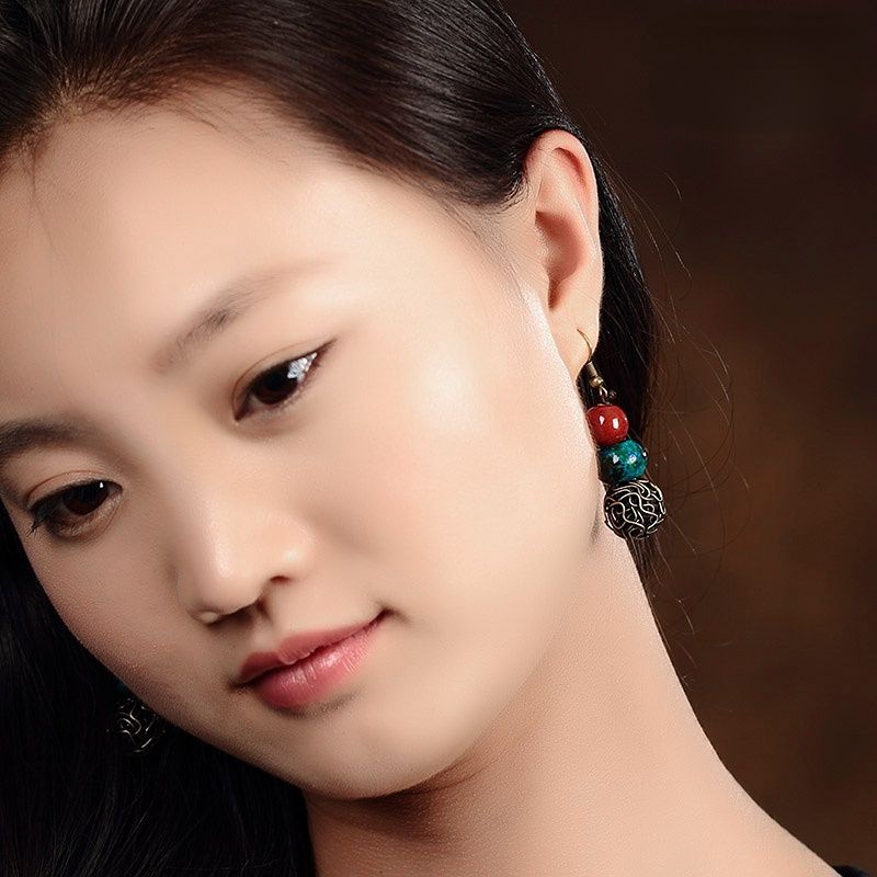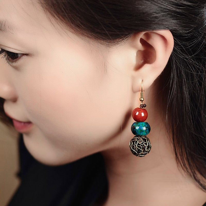 Original Handmade Ceramic Earrings Tibetan Jewelry Ethnic Wind Earrings Retro Literary Earrings