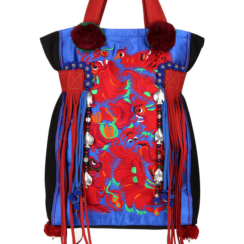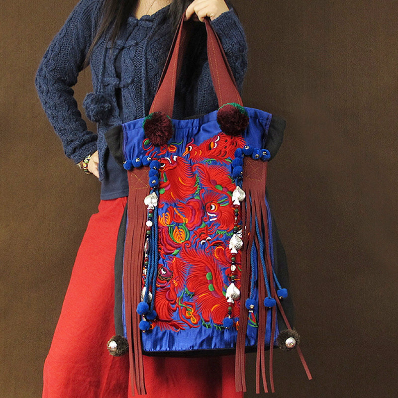 Original Ethnic Style Large Capacity Travel Tibetan Style Literature and Art Retro Embroidery One Shoulder Canvas Bag Women's Bag