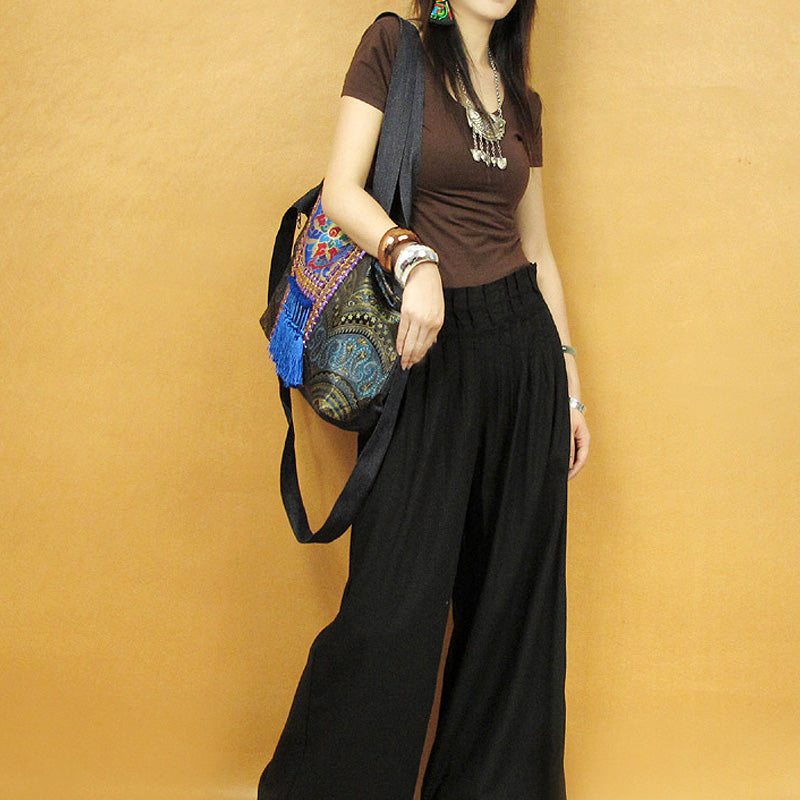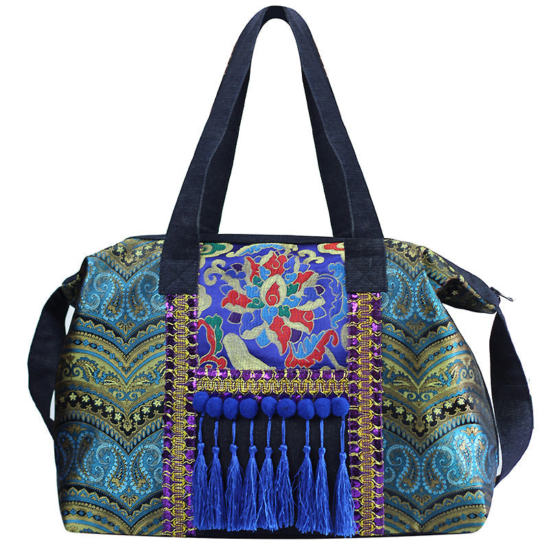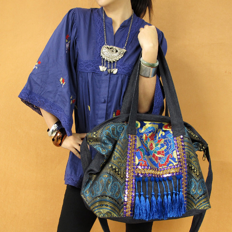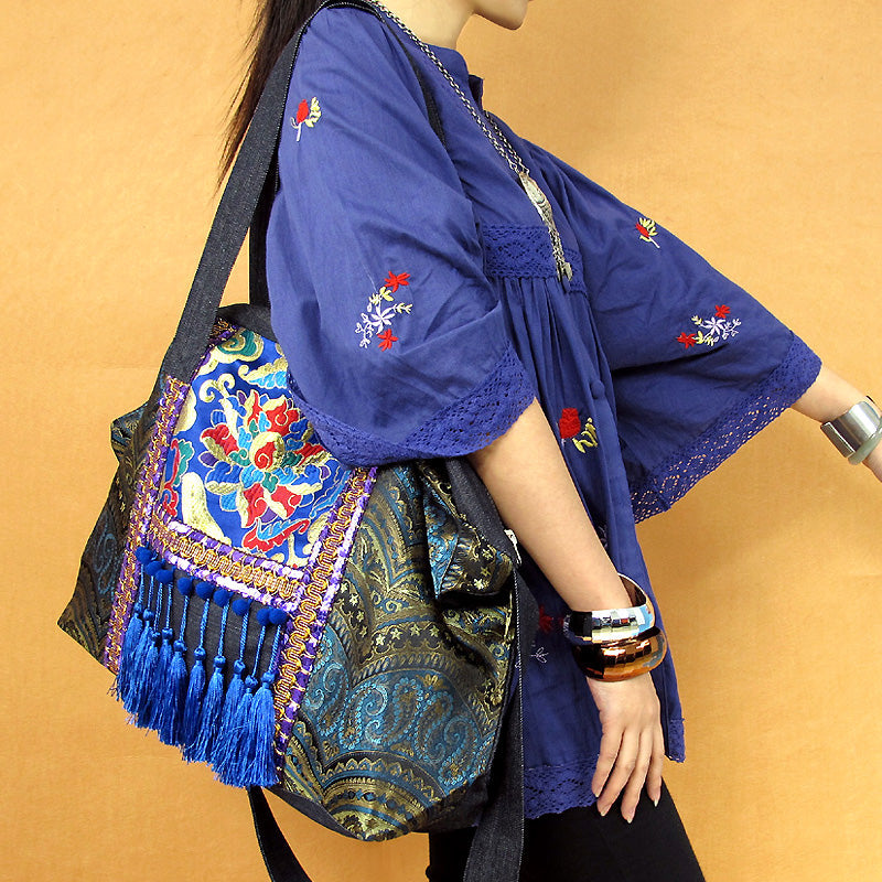 Original Ethnic Style, National Fashion, Retro Literature and Art Embroidery Tassel Single Shoulder Messenger Bag, Large Capacity Travel Cowboy Bag