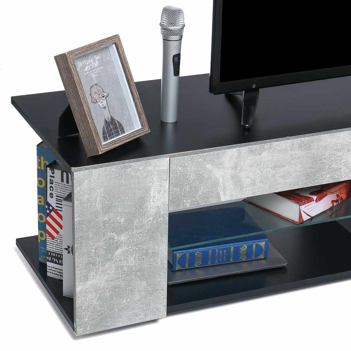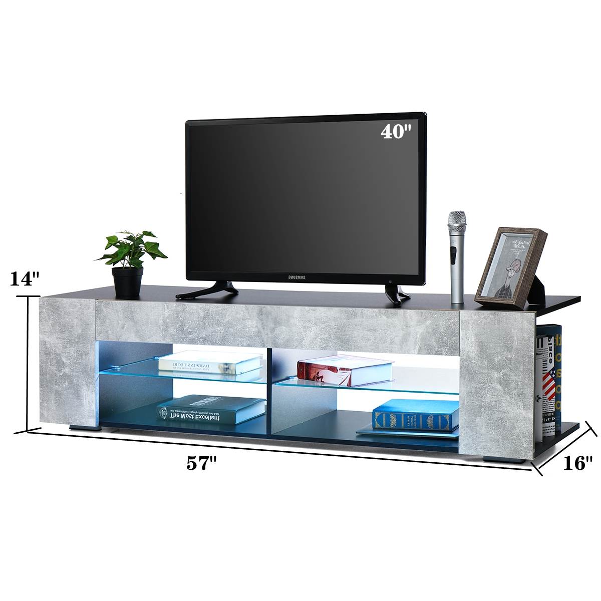 With stunning design and premium quality, this TV stand is ideal for home lovers. Featuring glass shelves with muti-colors LED back-light (remote control for color changing is including), which is made of MDF, and plenty of ample storage space for you. It is not only a TV cabinet, but also a decoration for your home living room.