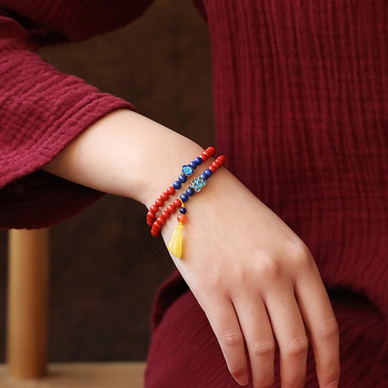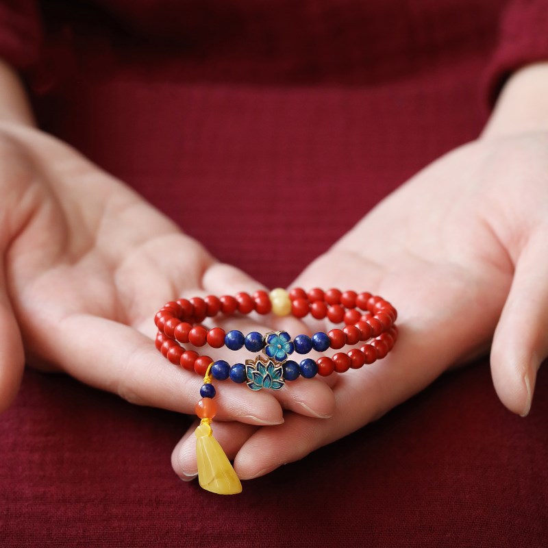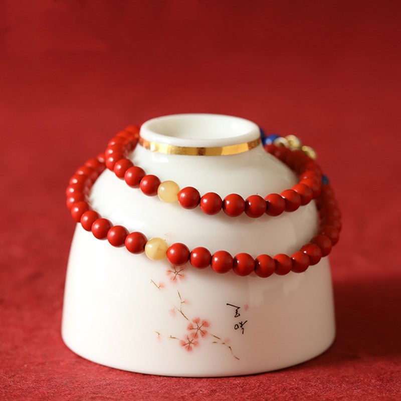 Natural Cinnabar Bracelet Multi-circle 5mm Original DIY with Beeswax Lotus Bead Bracelet