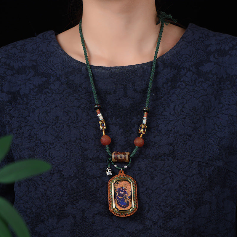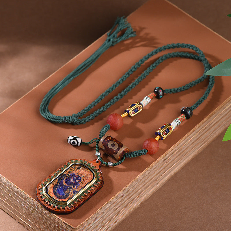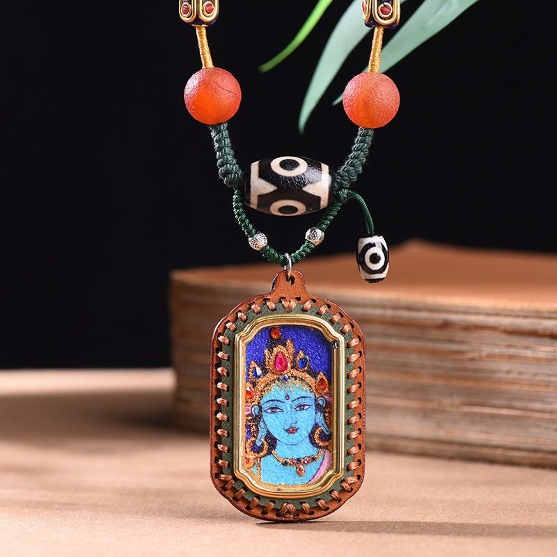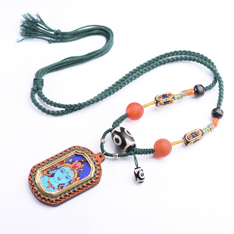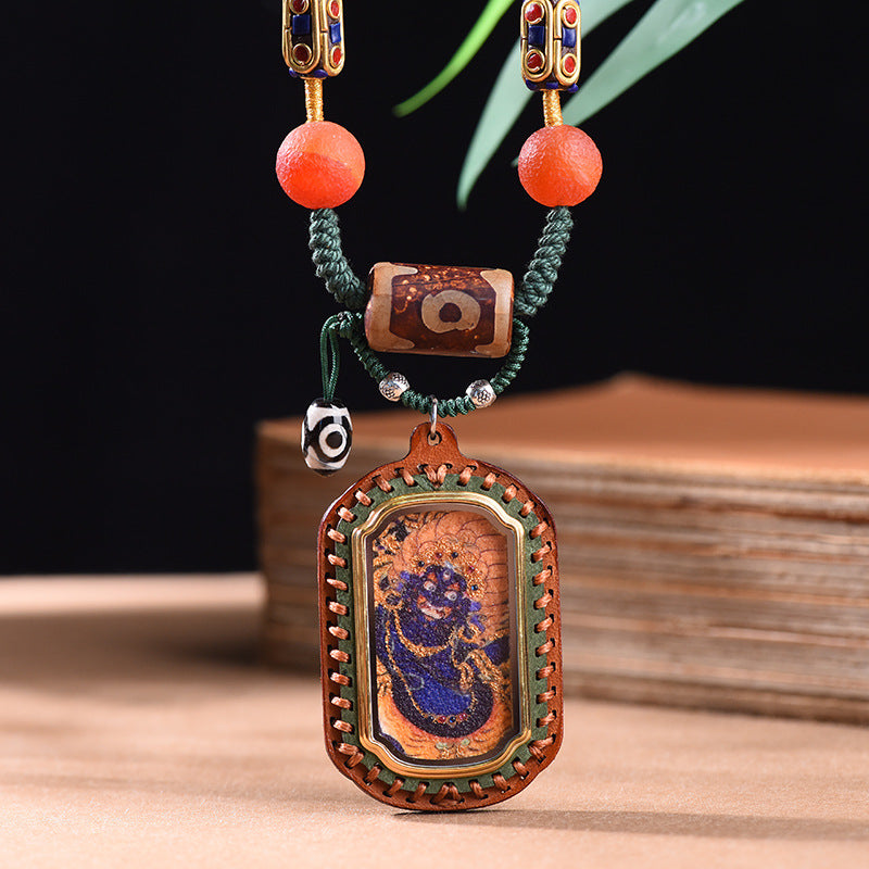 New Intangible Cultural Heritage Gem Painting Thangka Pendant God of Wealth Zakiram Hand-painted Thangka Leather Shell Pendant Single Pendant