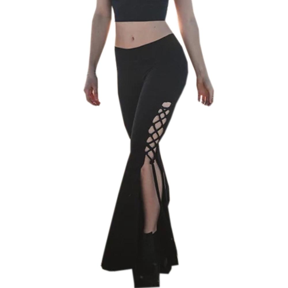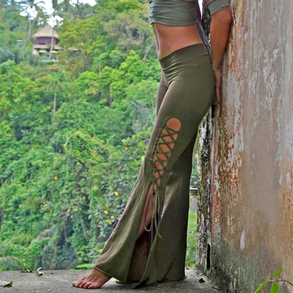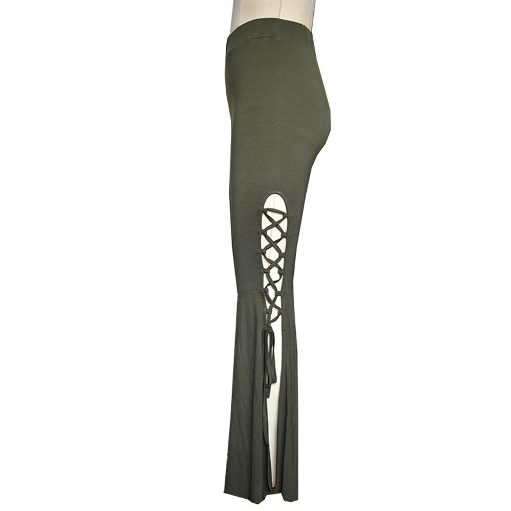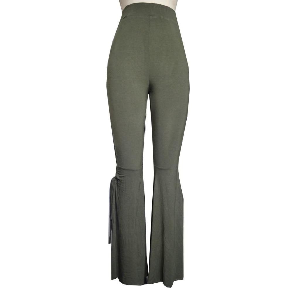 New Hot Fashion Women Bandage Pants Ladies Elastic Waist Wild Leg Pants Split Bandage Casual Pants Trousers