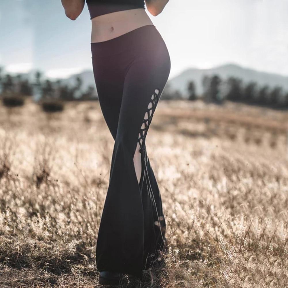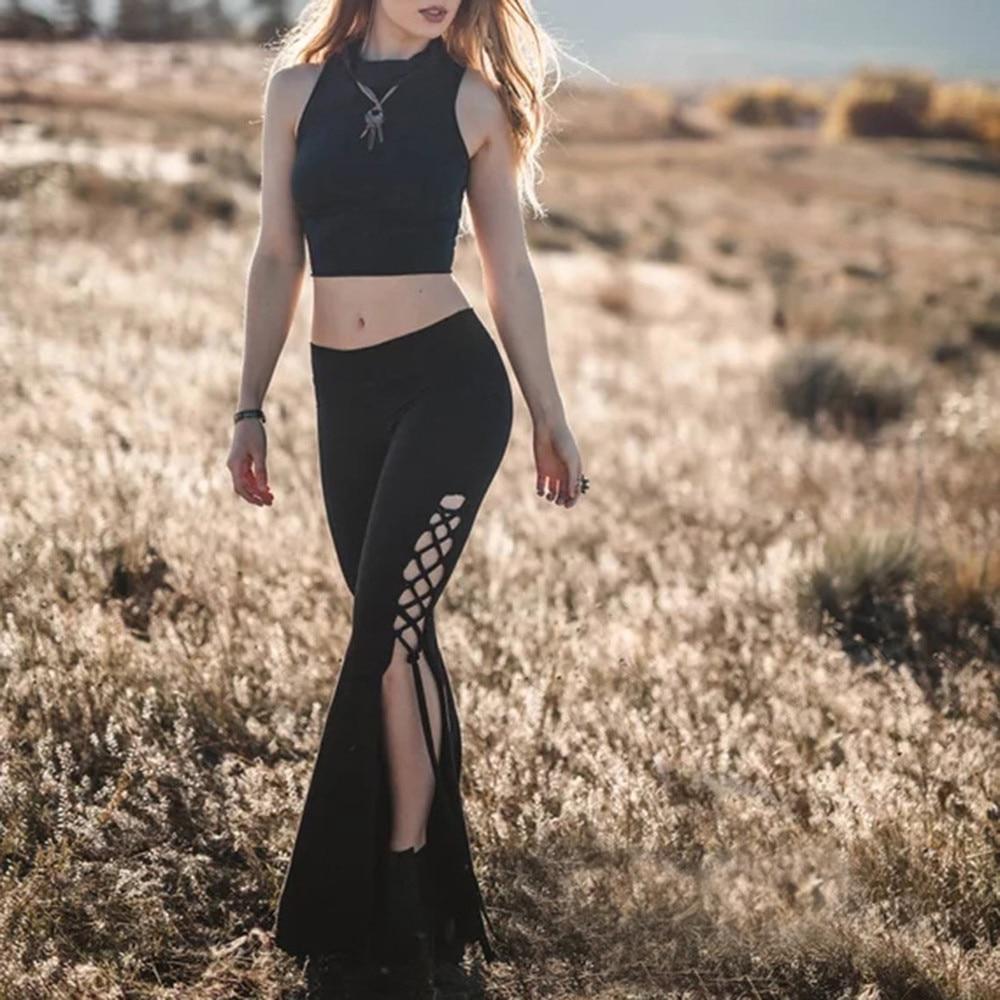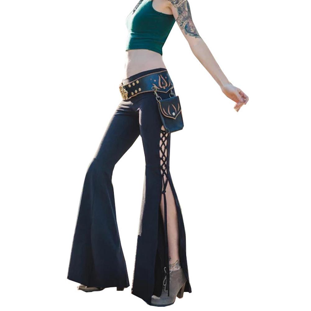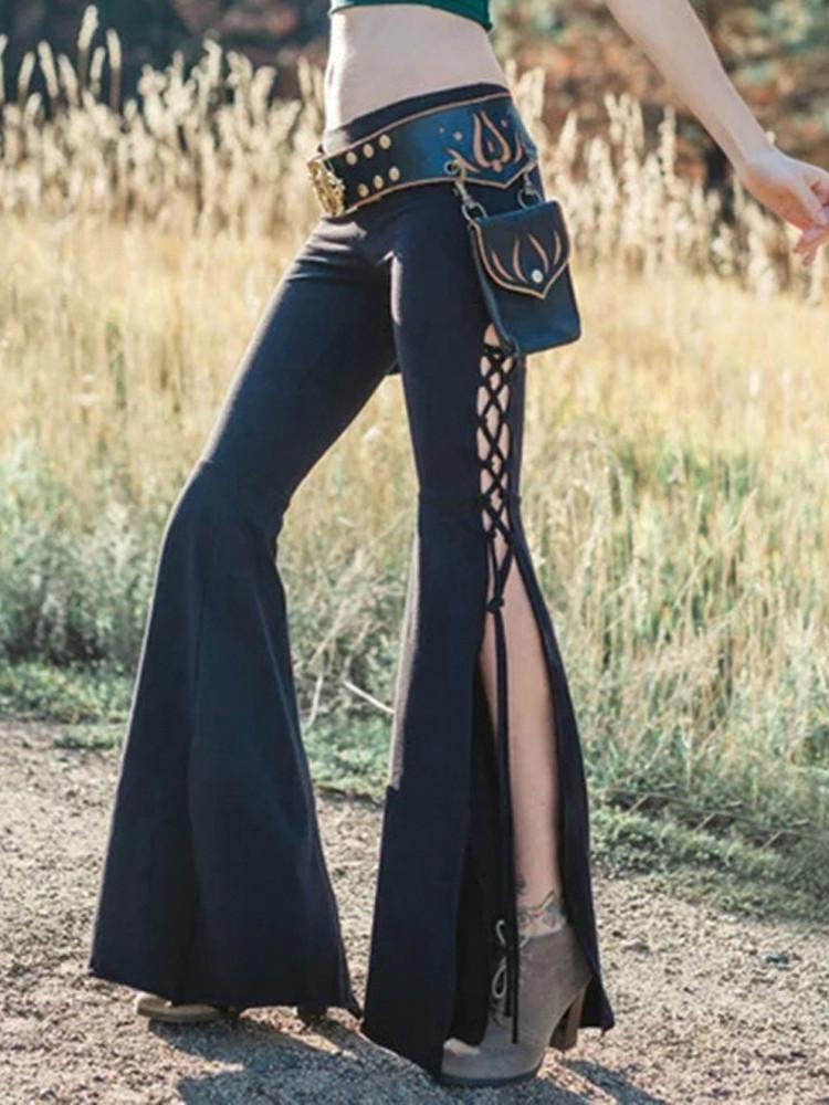 New Hot Fashion Women Bandage Pants Ladies Elastic Waist Wild Leg Pants Split Bandage Casual Pants Trousers