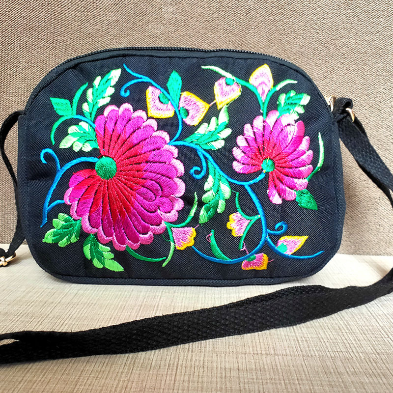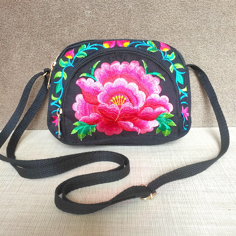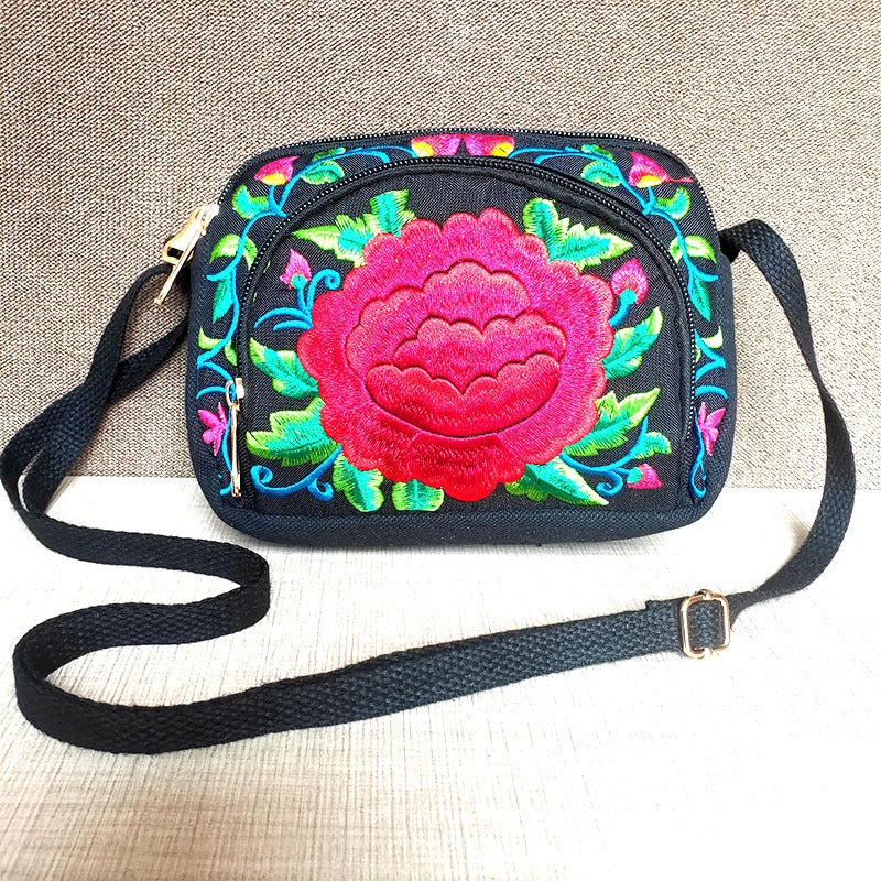 New Ethnic Style Embroidery Bag Women's Embroidery Crossbody Three-layer Zipper Shoulder Bag