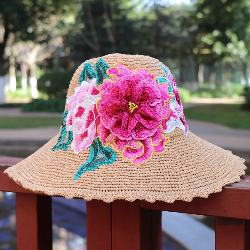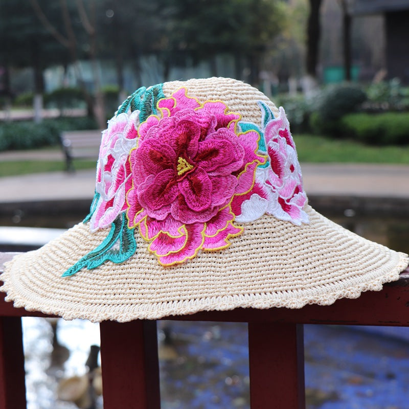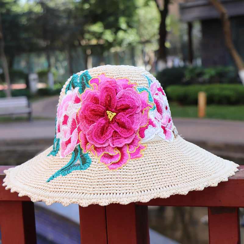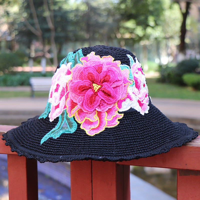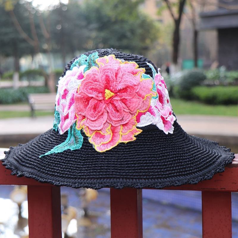 New Ethnic Style Embroidery Big brim Hat Sun Visor Hat 3D Flower Hat Women's Embroidery Hat