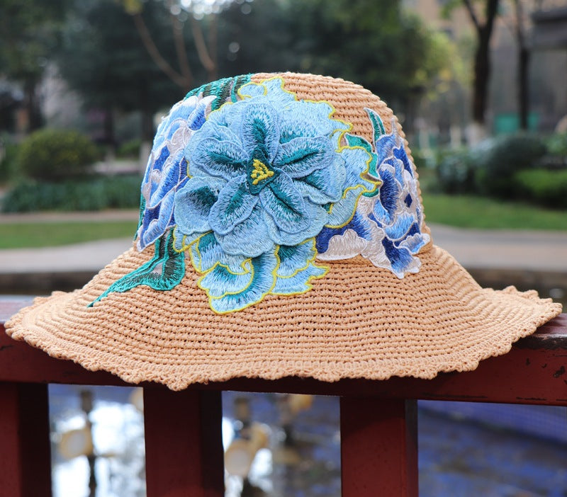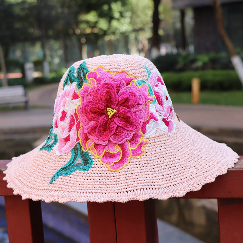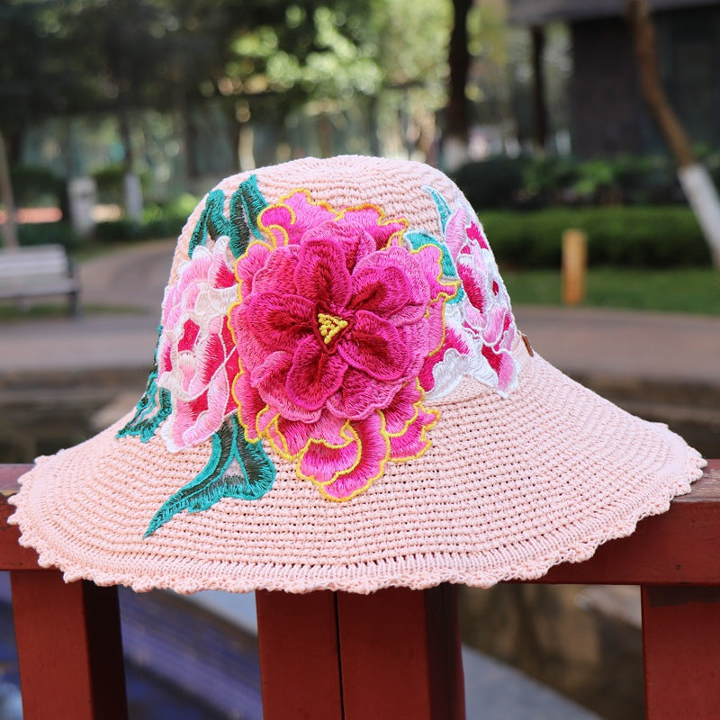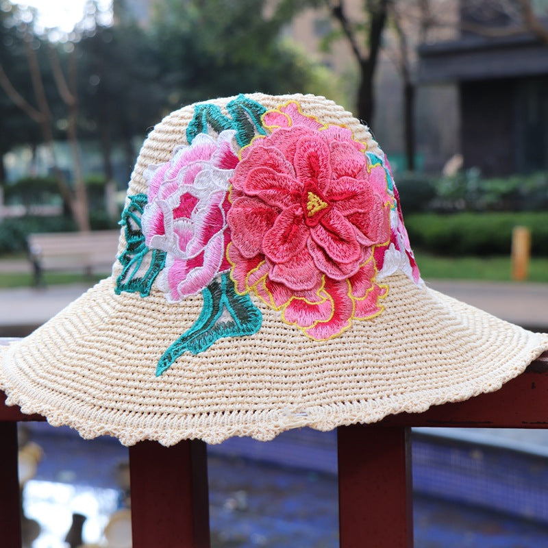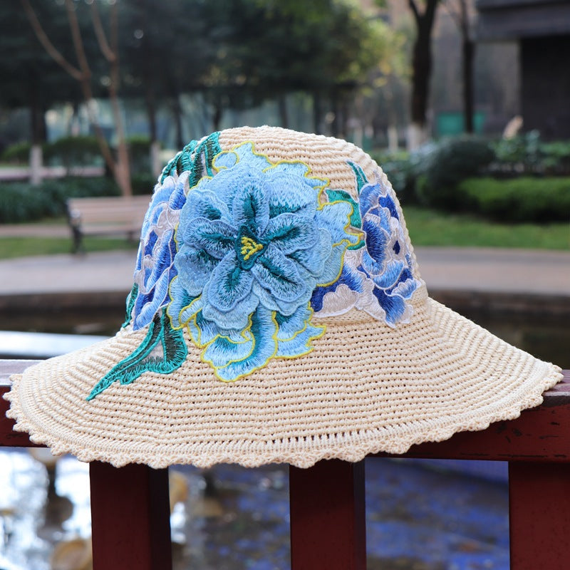 New Ethnic Style Embroidery Big brim Hat Sun Visor Hat 3D Flower Hat Women's Embroidery Hat