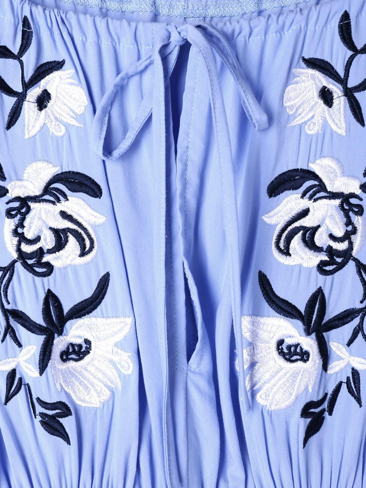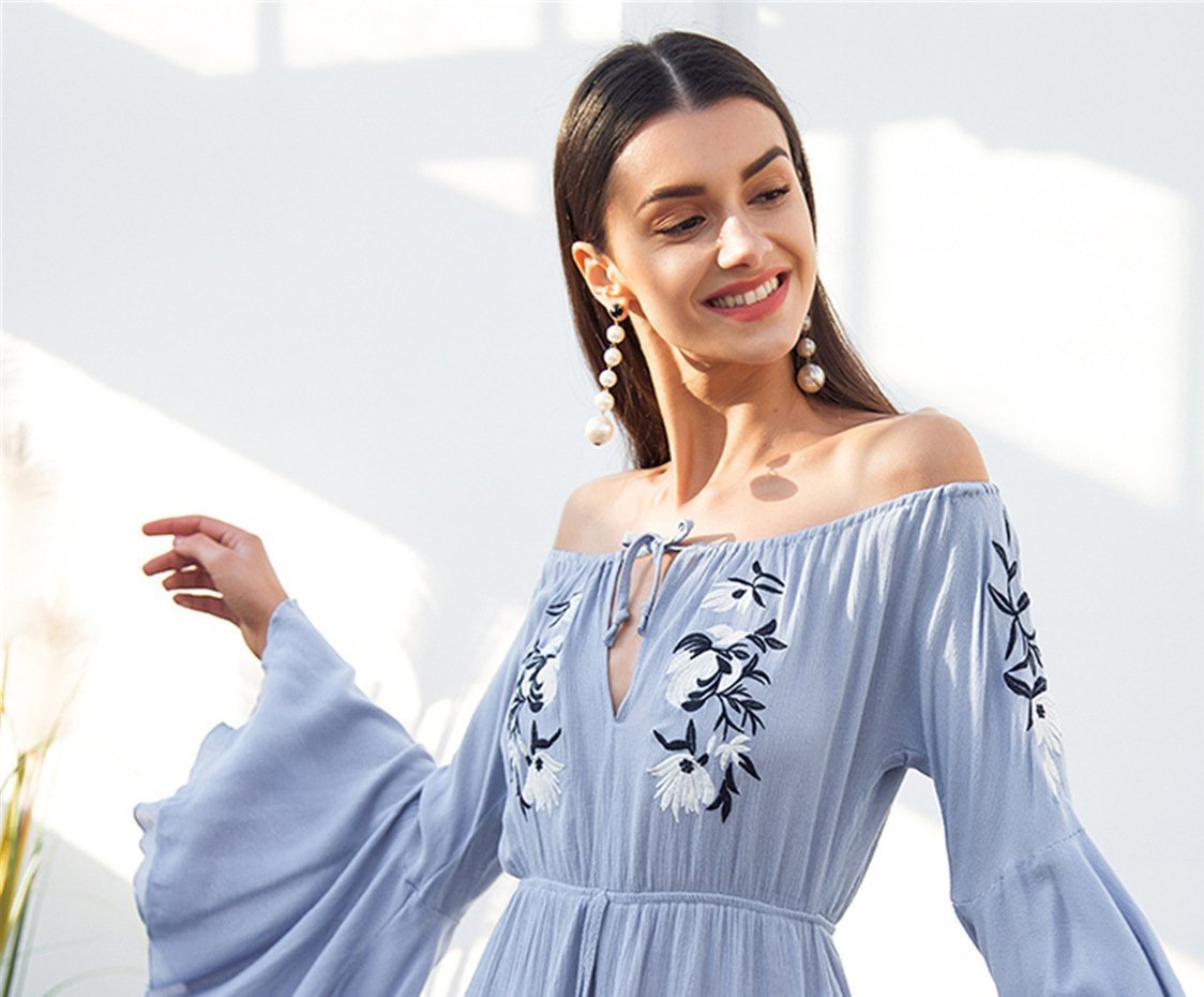 Off Shoulder Long Sleeve Embroidered Short Mini Dress