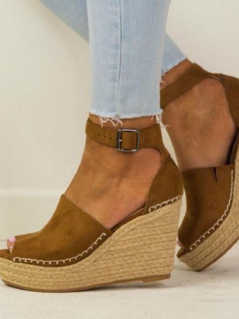 Open Toe Strappy High Heel Wedge Sandals