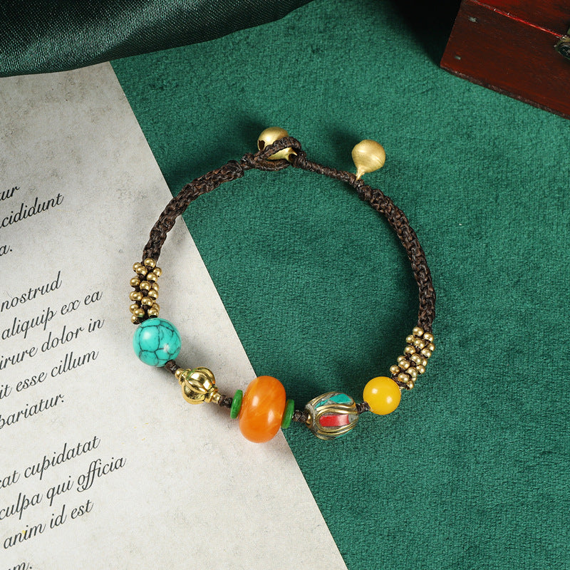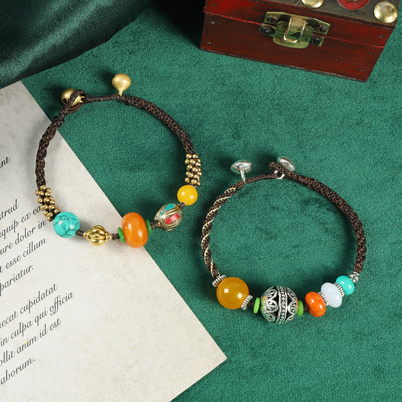 Original design woven Tibetan yellow honey bracelet ethnic personality Tibetan bracelet Nepal accessories.