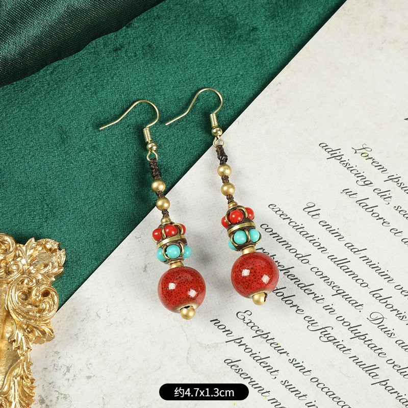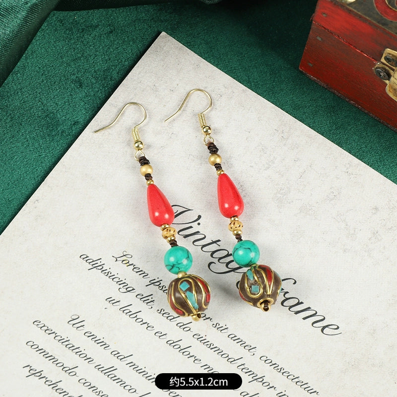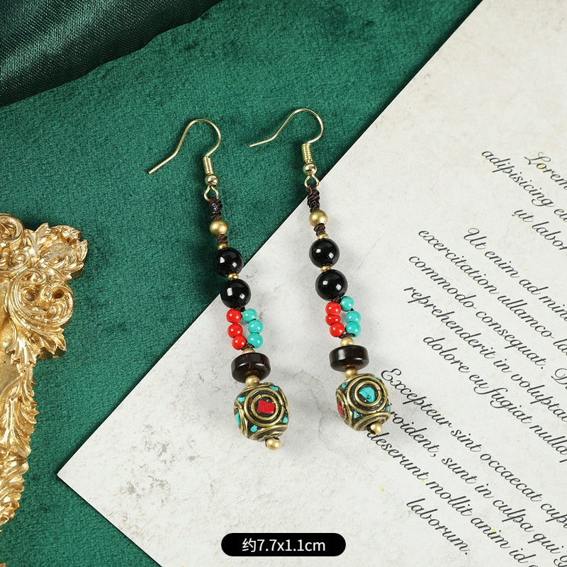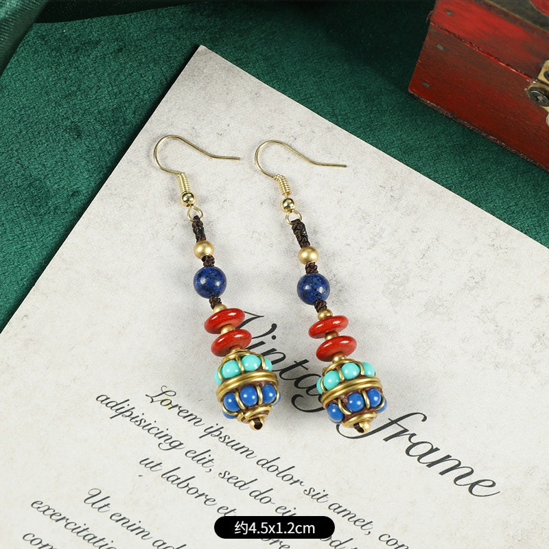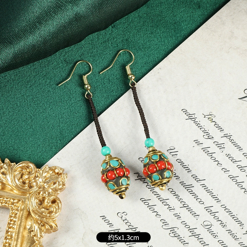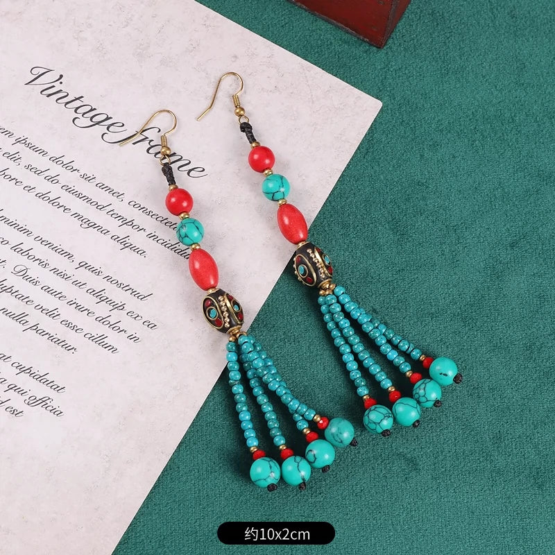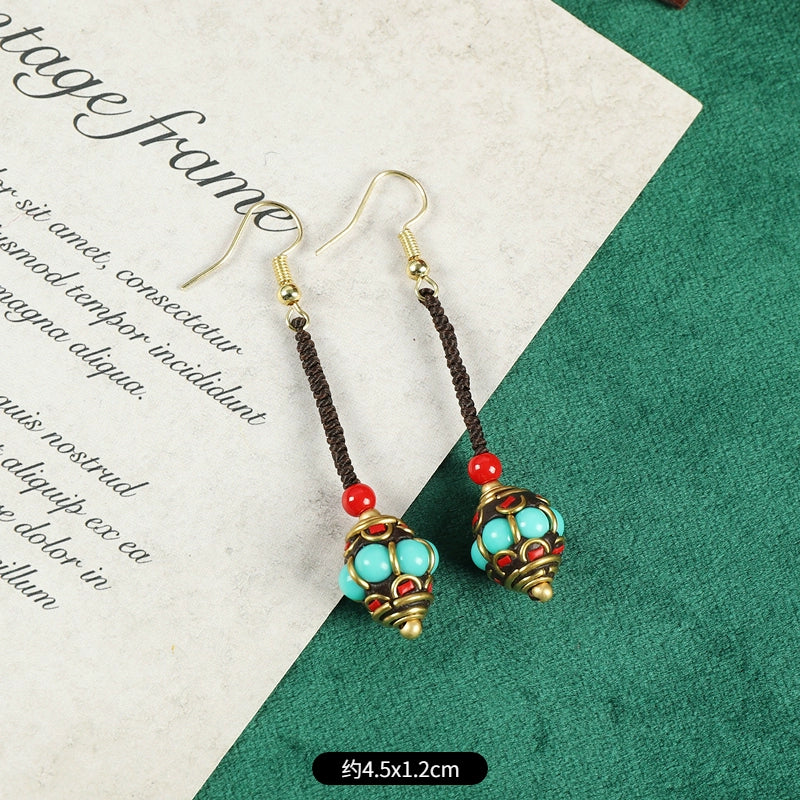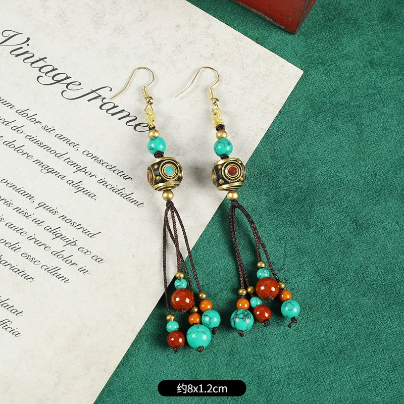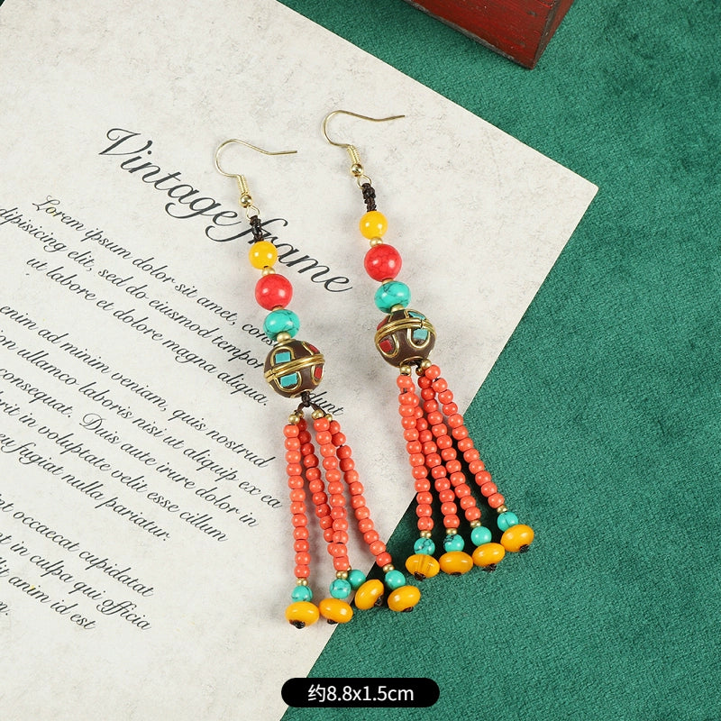 Nepalese Tibetan Woven Earrings Original Design Ethnic Style Long Tassel Earrings Tibetan Exotic Retro Earrings