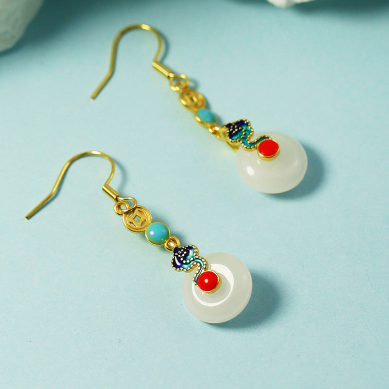 Ping An Buckle Temperament Earrings Long Retro Style Copper Coins EarringsMaterial: Alloy, Stone