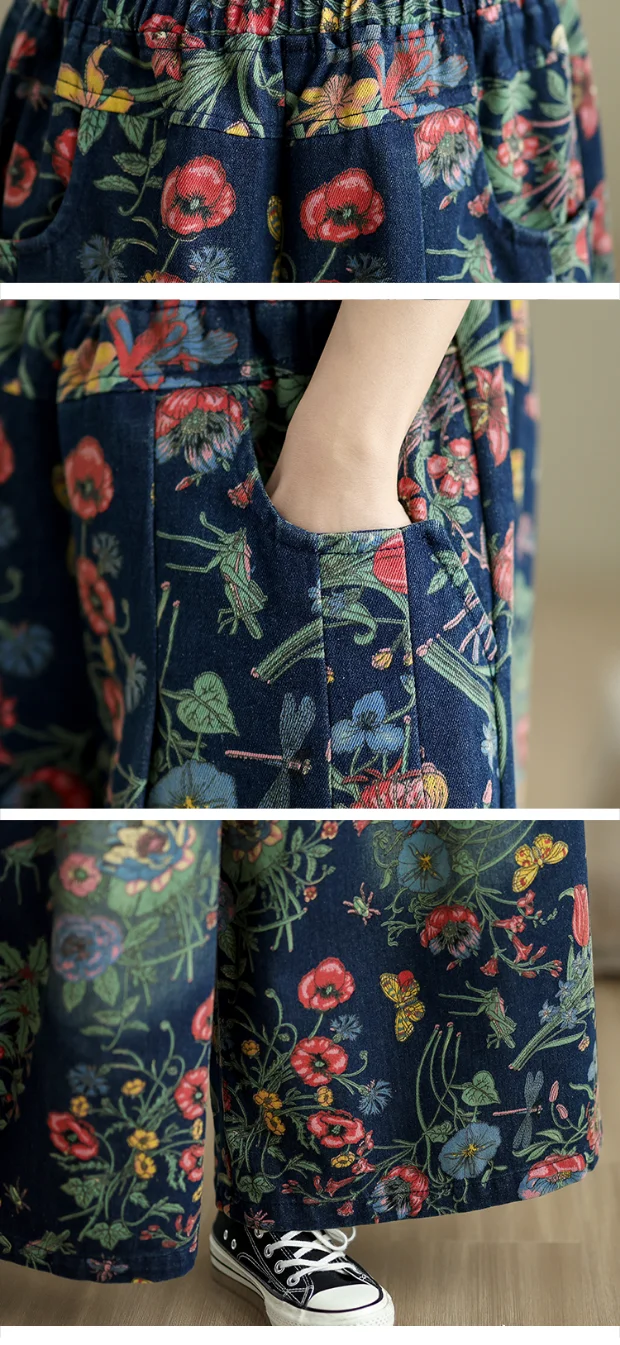 plus Size Denim Wide Leg Pants Women's Autumn Winter New Print Elastic Loose Slimming Casual Straight Cut Commute Sle High ...