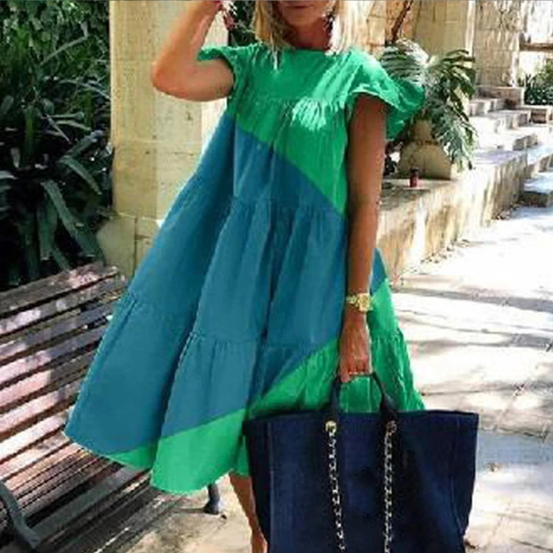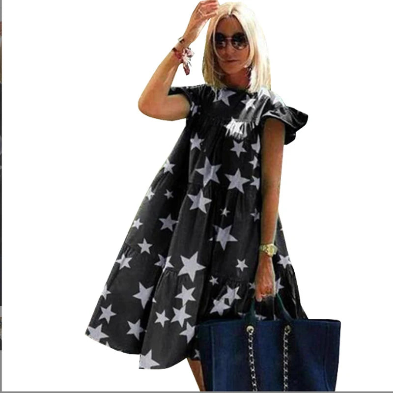Plus-size Dress Round Neck Pink Maple Leaf Butterfly Print Loose Casual Beach Dress Women's Elegant Dresses Midi Dresses Fashion