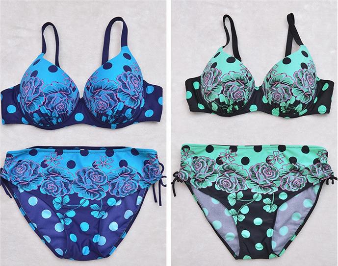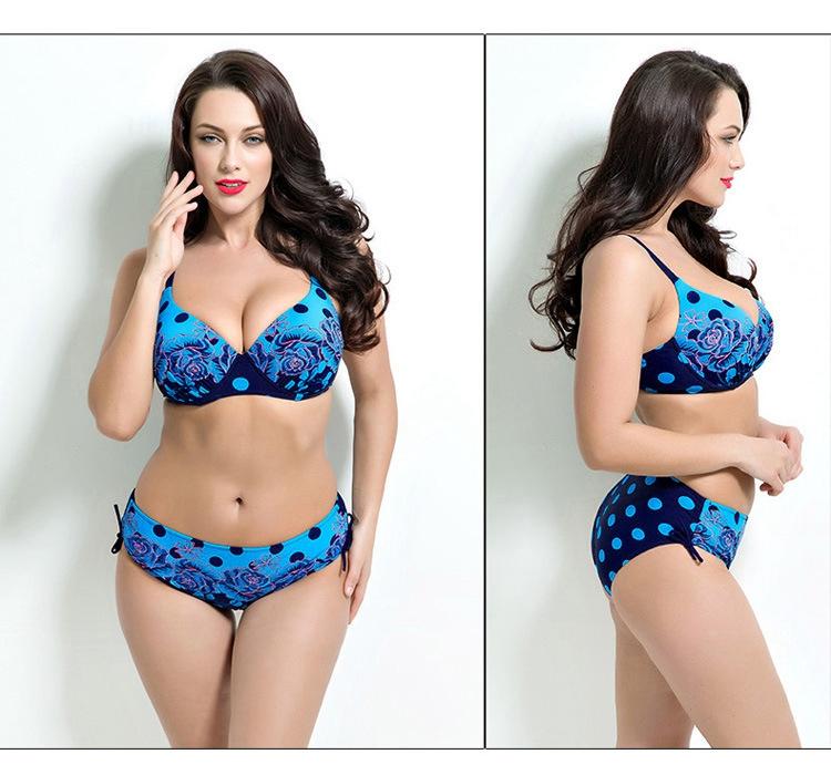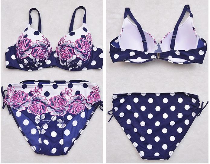 Plus Size Polka Dot Printed High Waist Backless Bikinis Sets Swimwear For Women