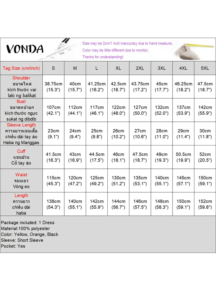 Plus Size VONDA Women Bohemian Dress 2025 Summer Sundress Solid Color Casual Short Sleeve Party Ruffled Vestidos V-Neck Robe