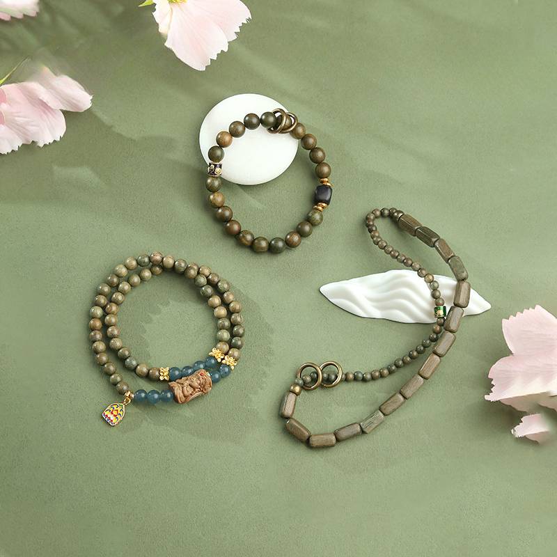 Potala Palace Green Sandalwood Bracelet Women's Buddha Beads Rosary Plate Play Wooden Unpopular Bracelet Men Women