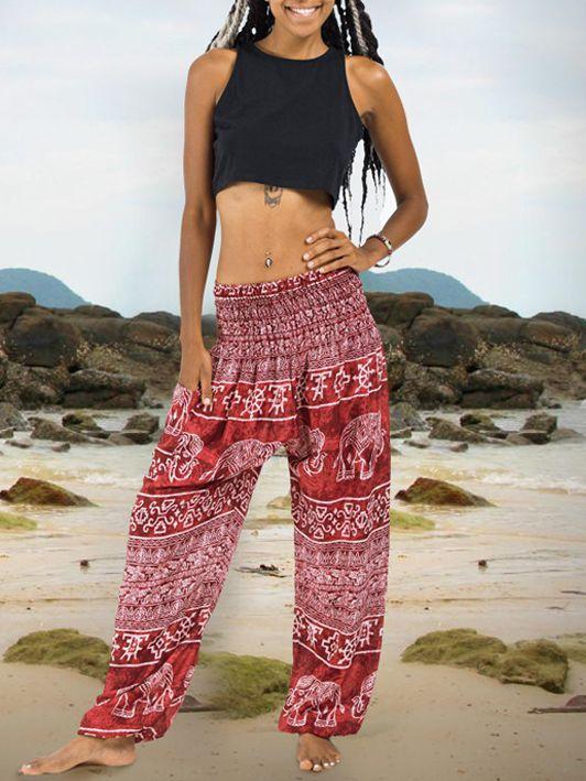 Printed National Style Foot Knickers Loose Fitness Yoga Pants