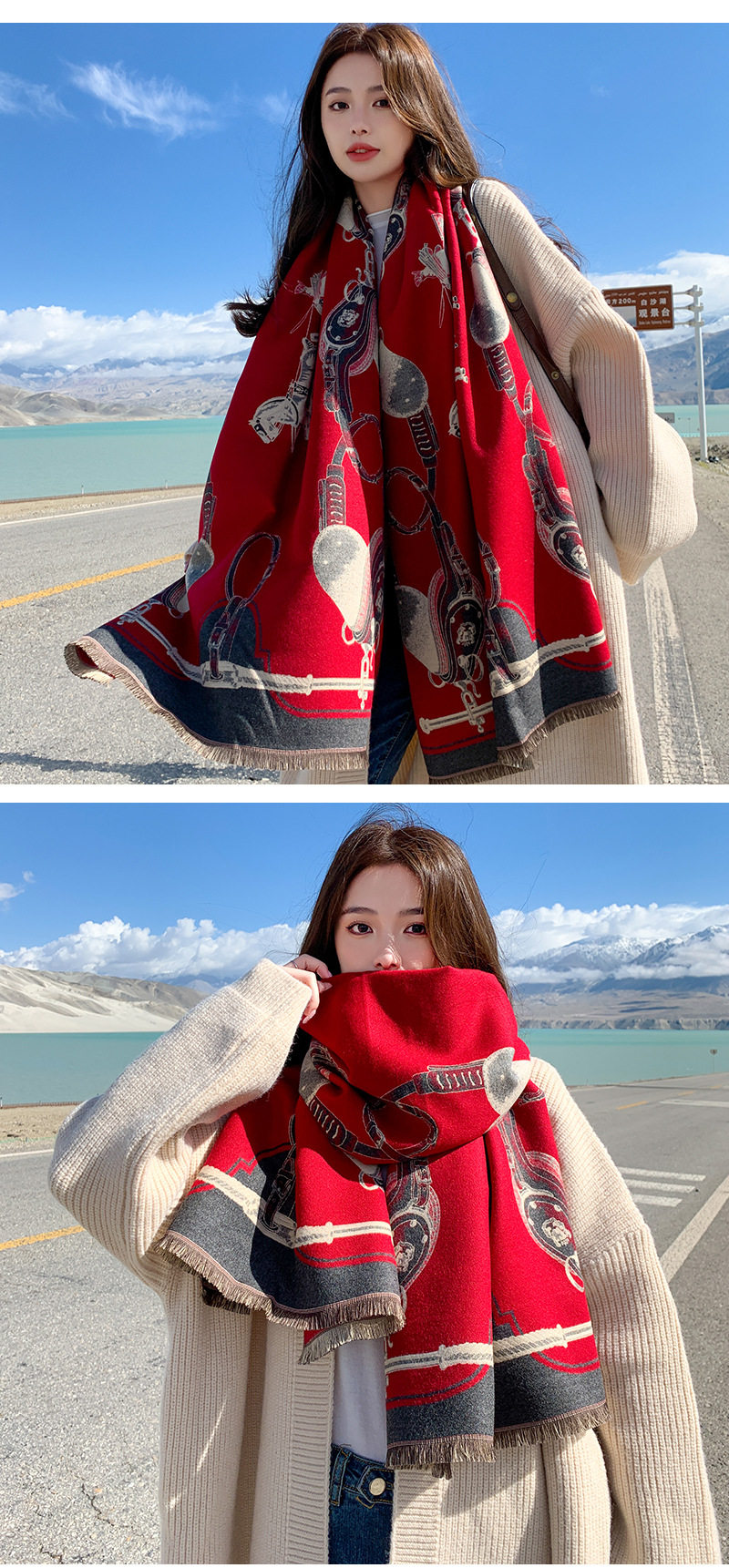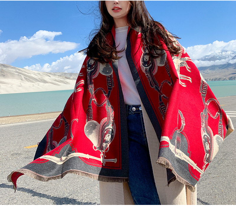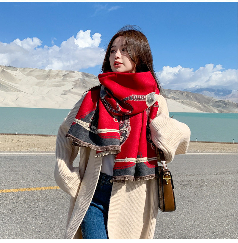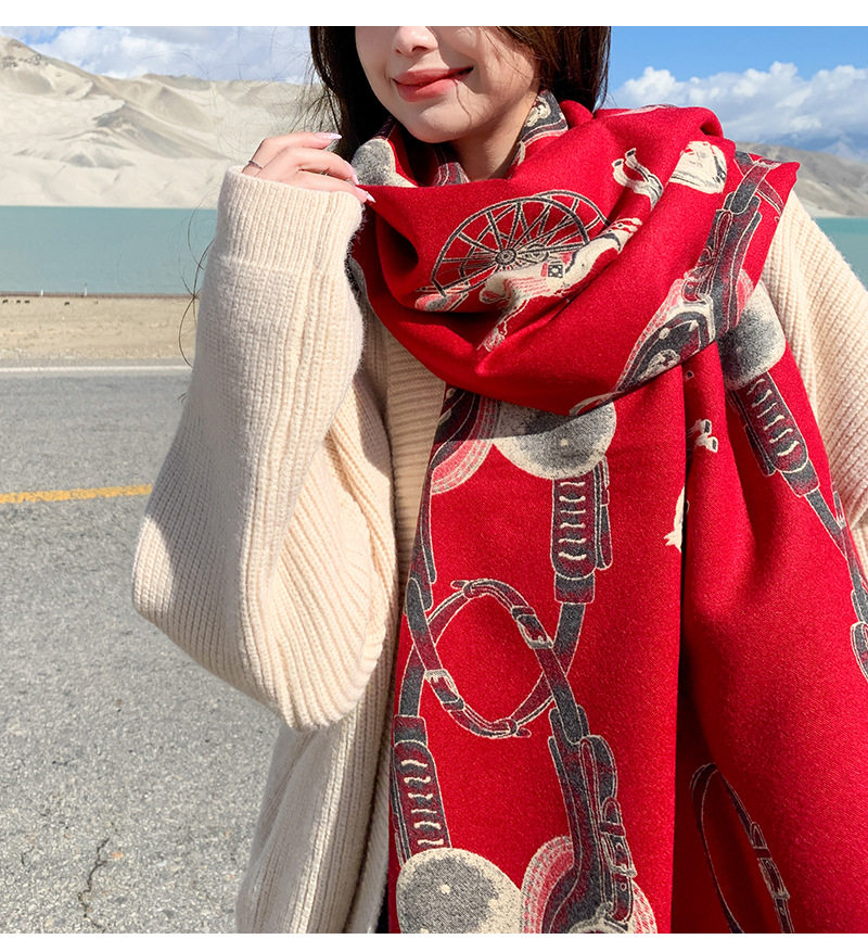 Red scarf women's winter new versatile cashmere high-end sense fashion dual-purpose shawl thickened neck