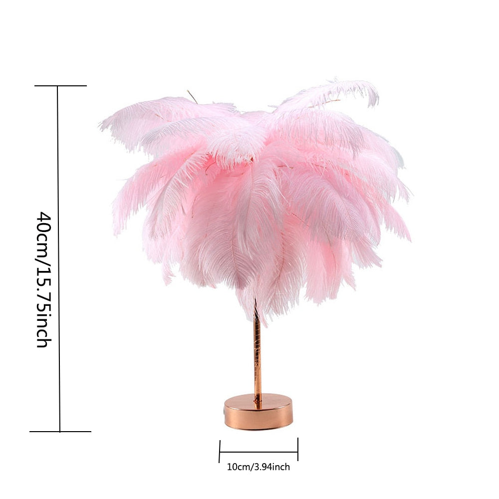 DIY Creative Feather Table Lamp Warm White Light Tree Feather Lampshade Girl LED Wedding Decorative Lights Pink White Birthday Gift