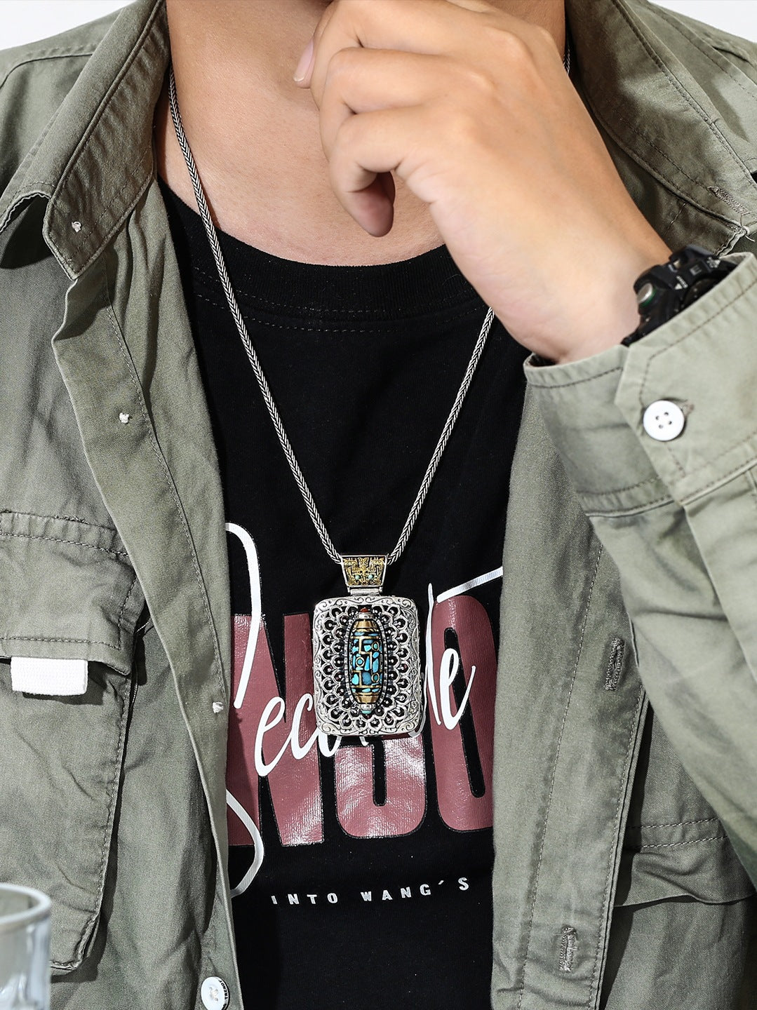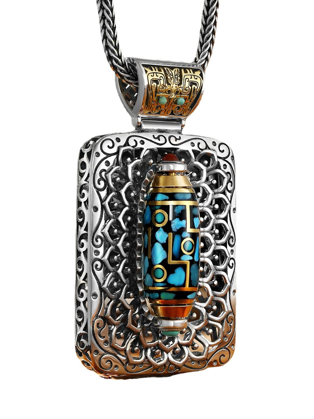 Retro Turquoise Rotating Sterling Silver Pendant Gluttonous National Necklaces