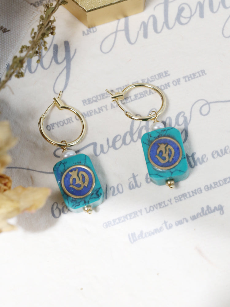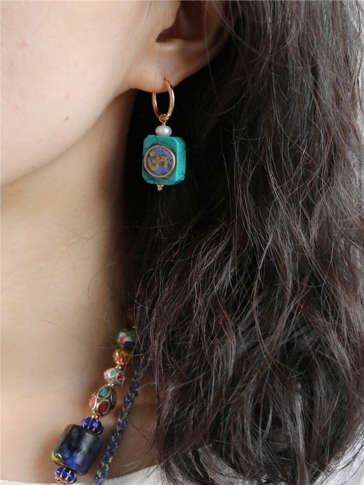 Vintage Temperament Artistic Tune Ear Ring Turquoise Square Earrings