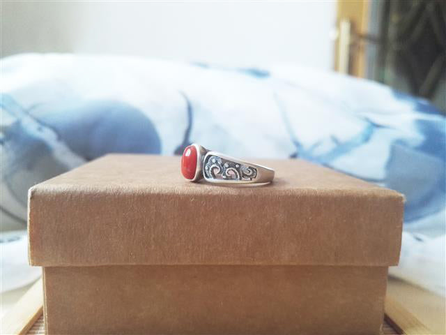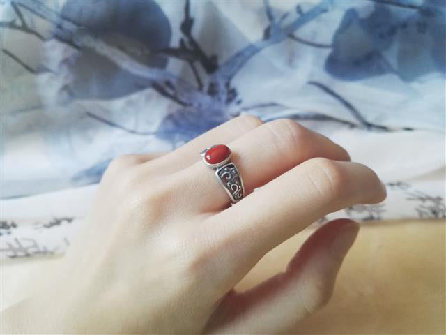 S925 Silver Plated Hollow Pattern Agate Ring with Imperial Ancient Style, National Style, Retro Style Ring