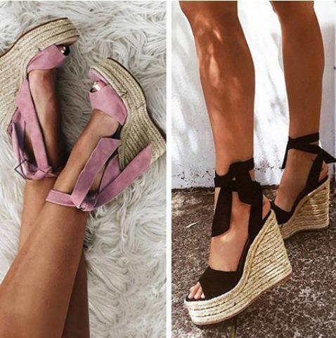 Sexy peep Toe Platform Wedge Woman Summer Rope High Heels Sandals