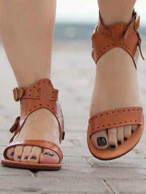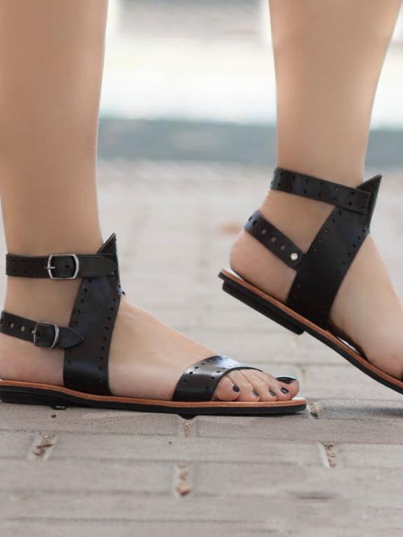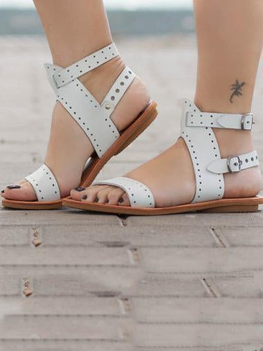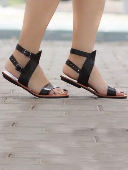 Solid Color Casual Open Toe Flat Sandals Shoes