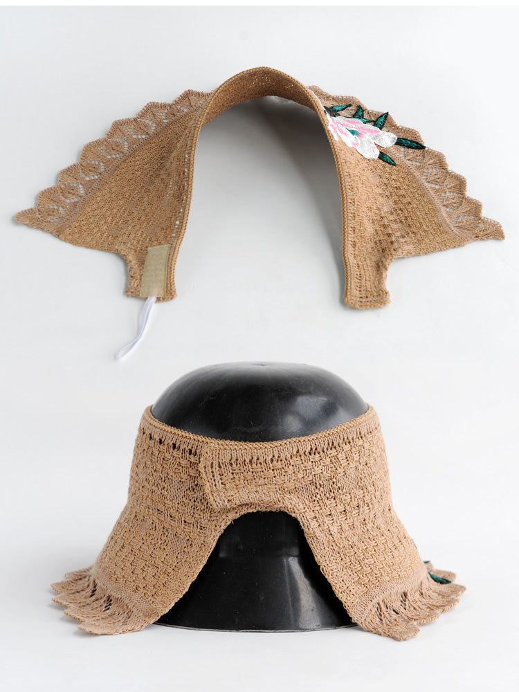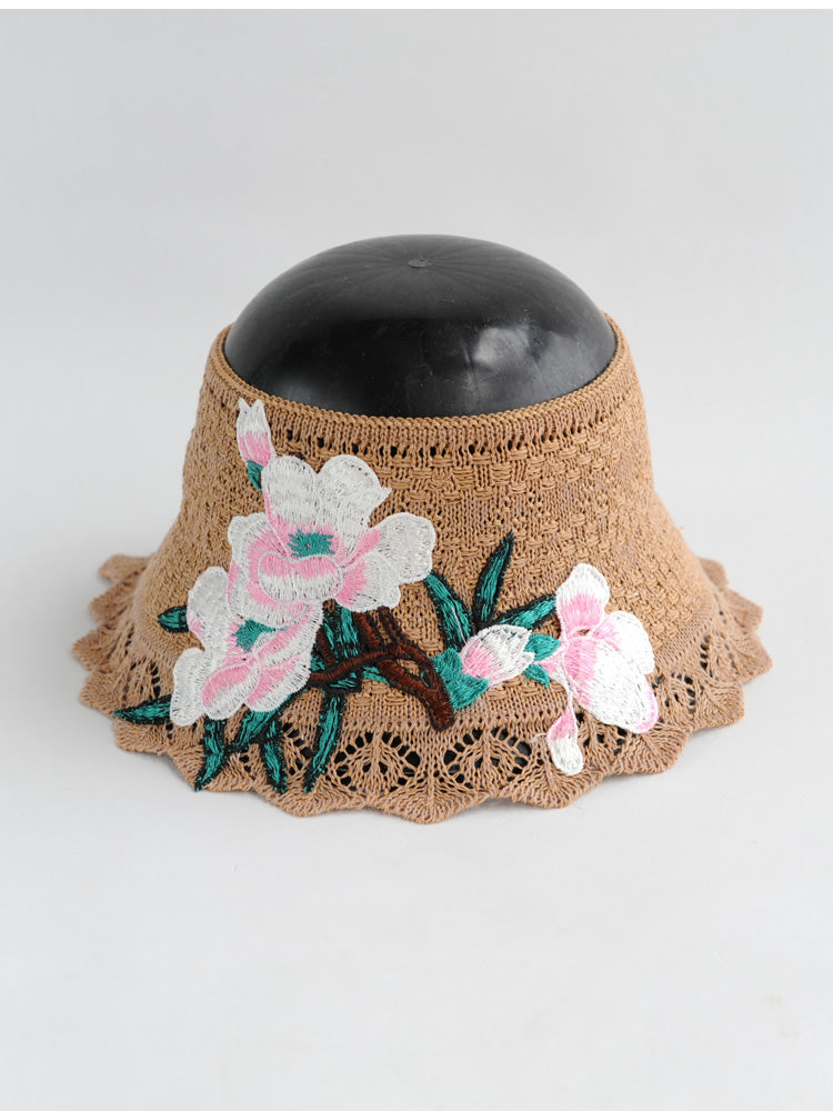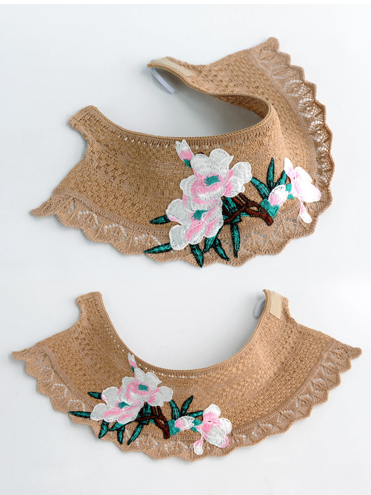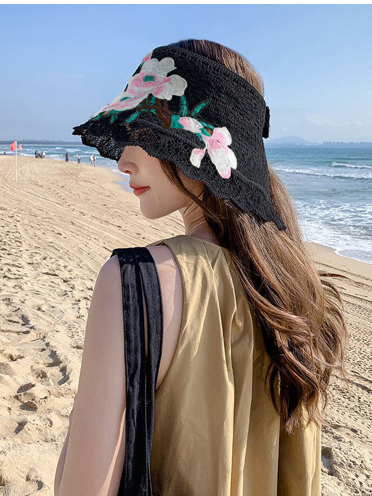 Spring and summer women's ethnic style embroidery cotton empty top beach hat sun protection face sun hat foldable sun hat