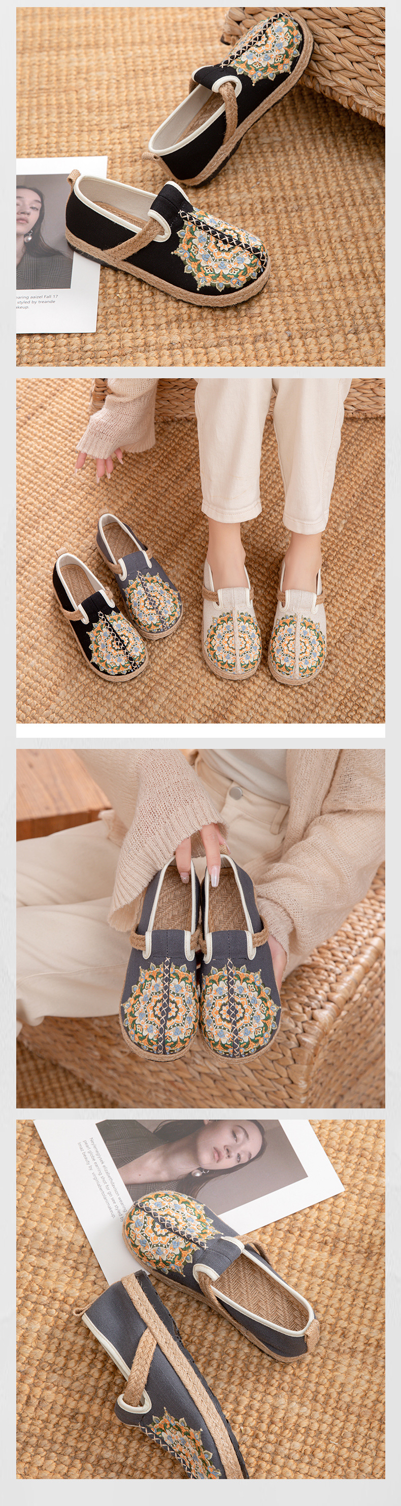 Spring New Ethnic Style Embroidered Cloth Shoes Handmade Linen Soft-soled Women's Single Shoes