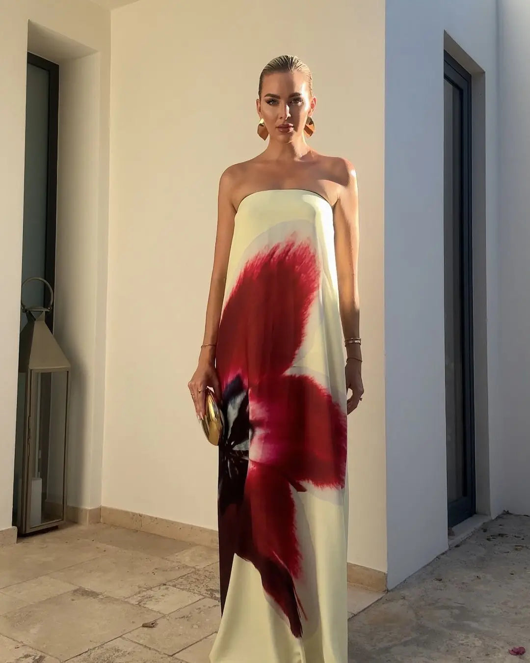 Strapless Back Belt Sleeveless Women's Long Dress Sexy Printed Backless Off Shoulder Vestidos Summer Casual Vacation Beach Robes