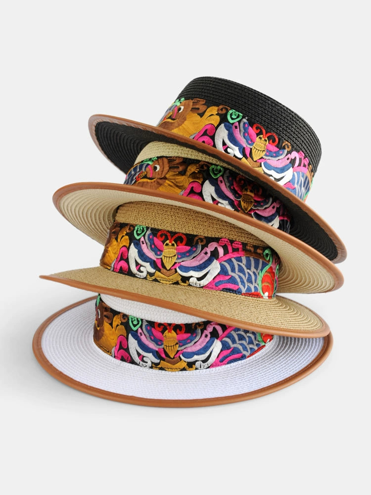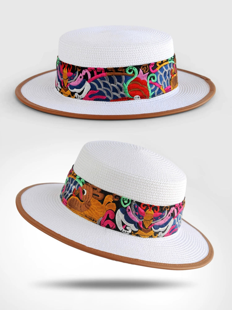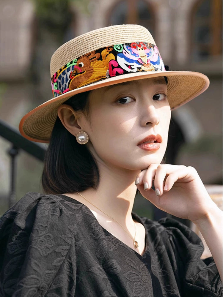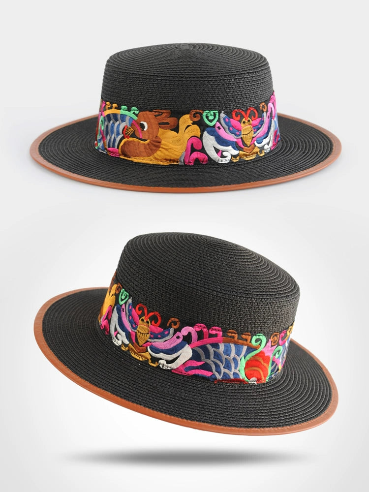 Straw Hat Retro Ethnic Style Embroidery Flower Beach Hat Spring and Summer Basin Hat