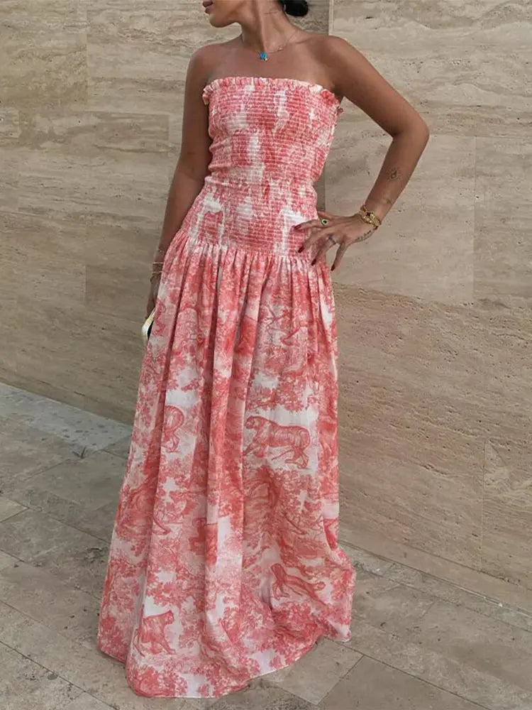 Summer Female Floral Printed Pleated Patchwork Dress Female Ruffle Edge Backless Off Shoulder Slim Dresses Lady Vacation Robes