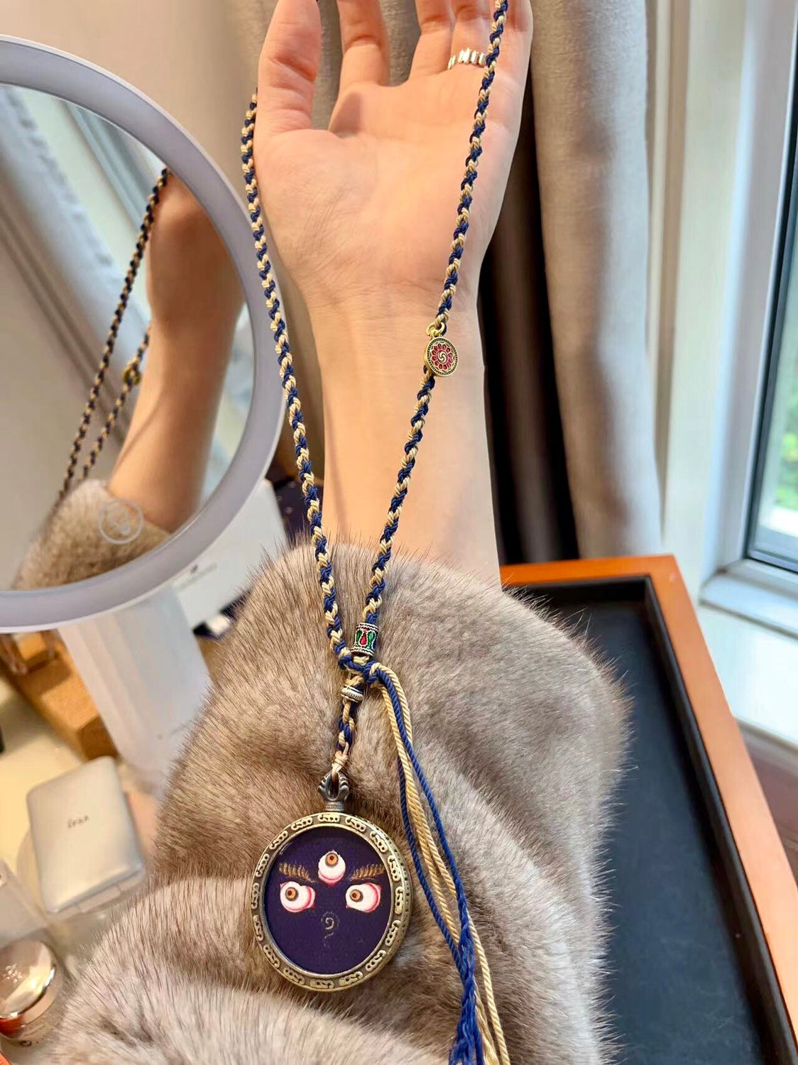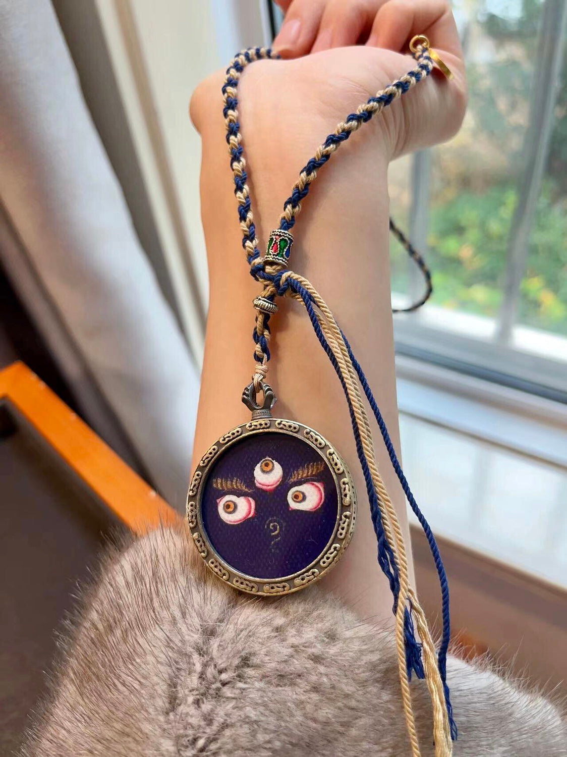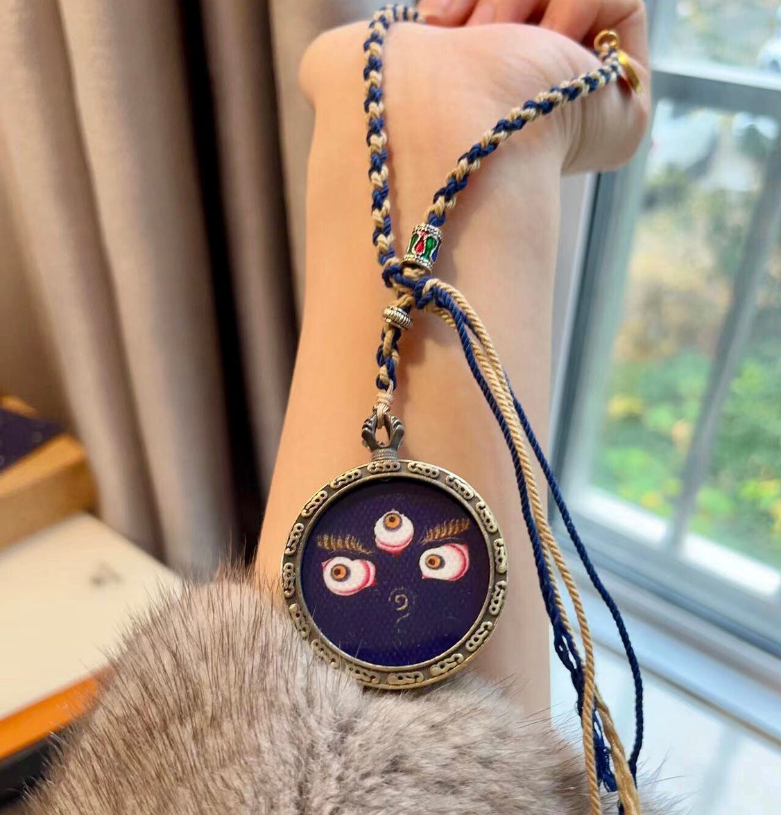 Tangka Black God of Wealth Dharma Eye Tibetan Sweater Chain Necklace