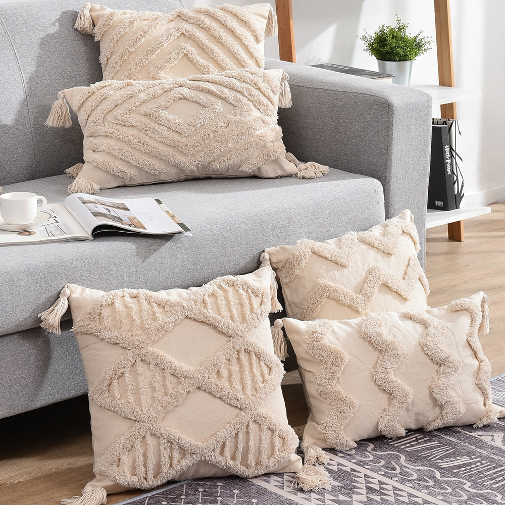 Tassels Decorative Cushion Cover 45x 45cm/30x50cm Beige Sofa Pillow Case Cover Handmade Home Decoration for living Room Bed