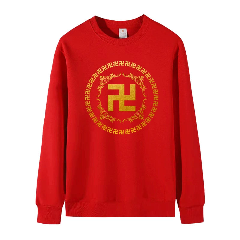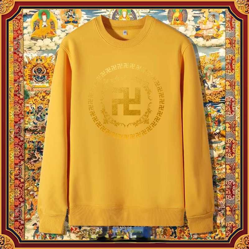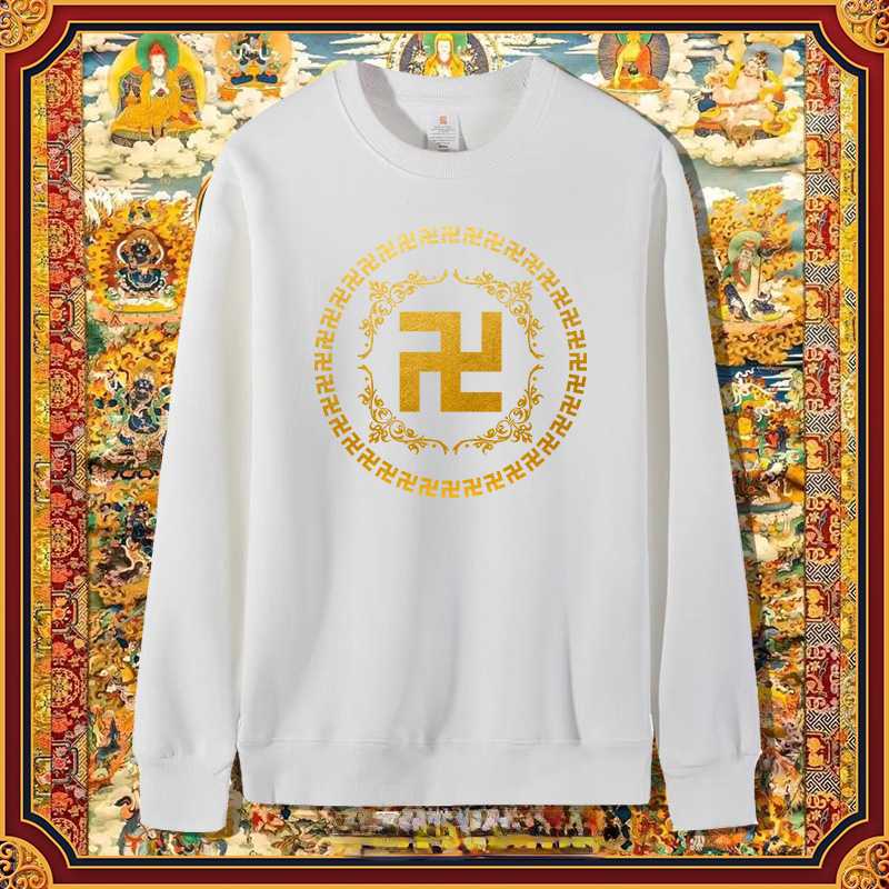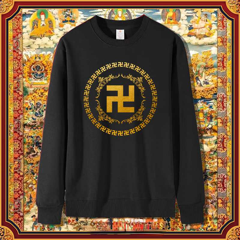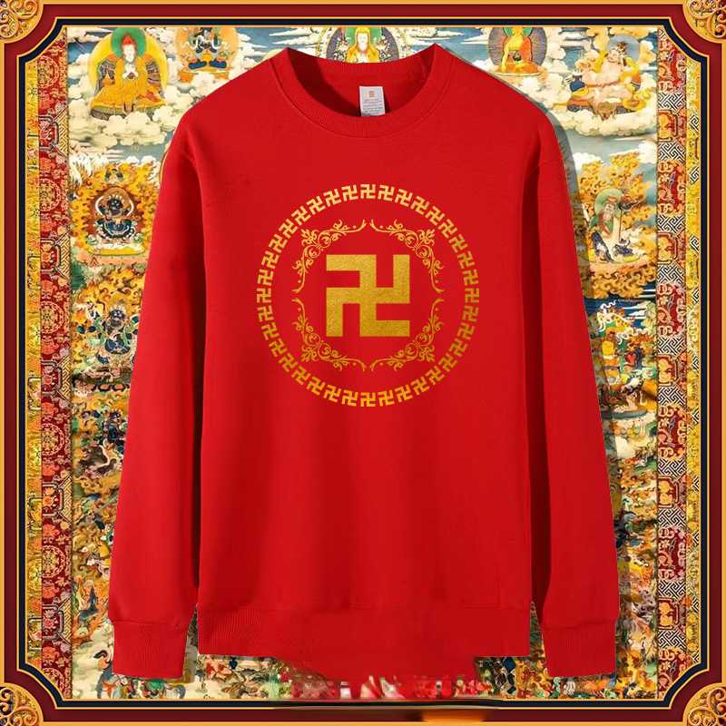 Buddha Heart Print 10,000 Characters Buddha Auspicious Cotton Sweatshirt for Men and Women New Buddhist Culture Pullover Long-sleeved Tops