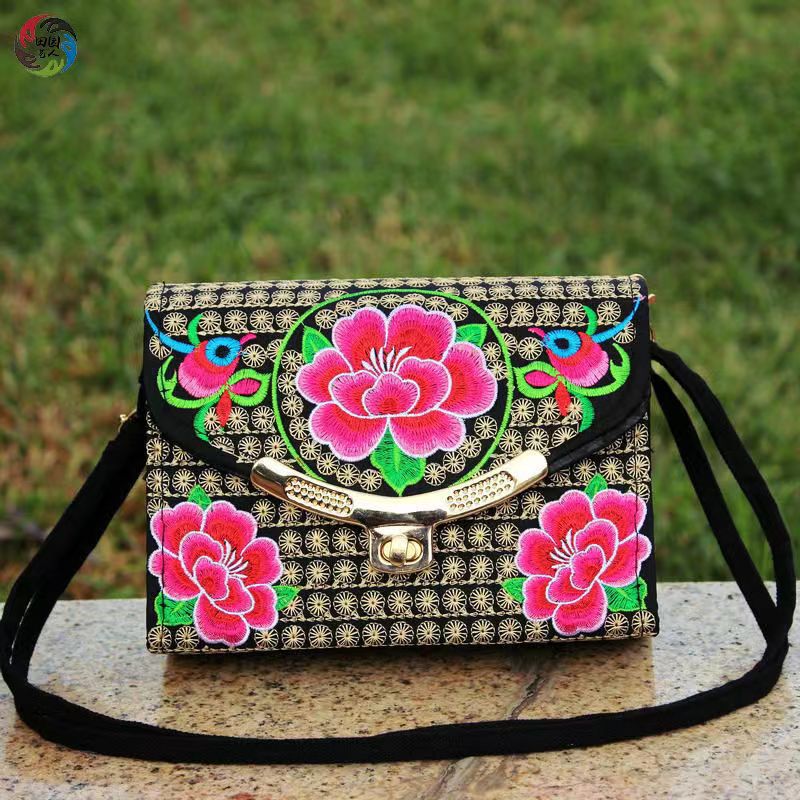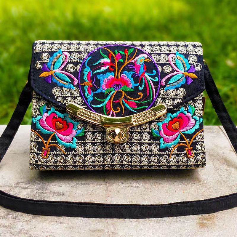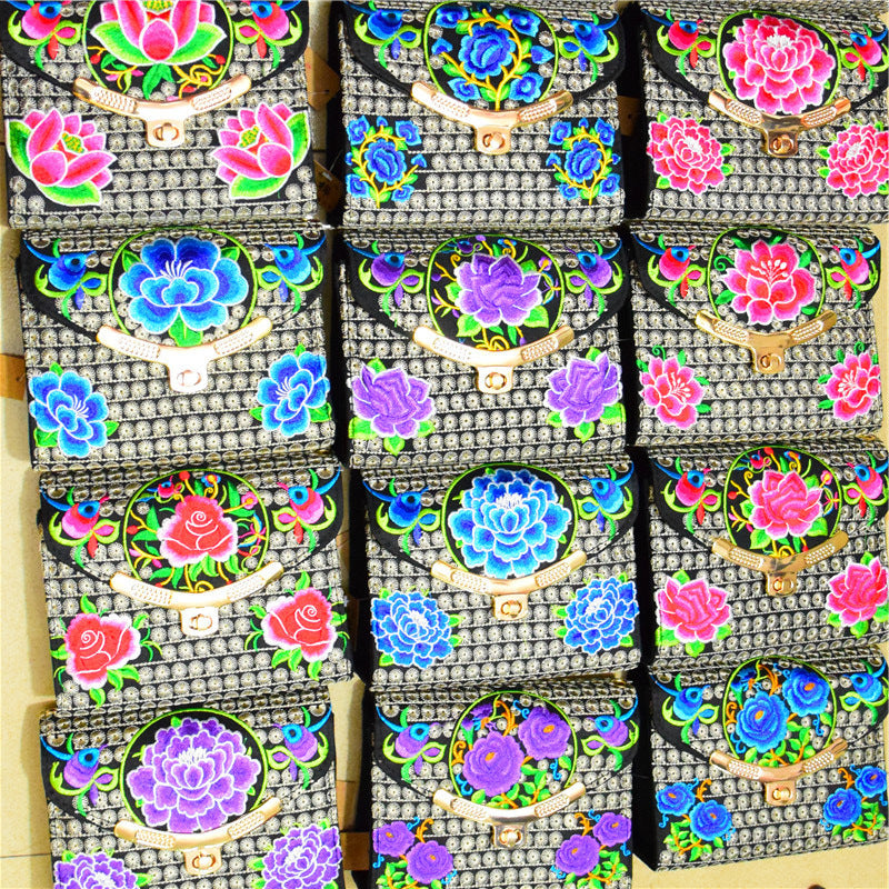 The New Embroidered Ethnic Bag, Mobile Phone Change Bag, Double-layer Small Bag, Women's Clutch Bag