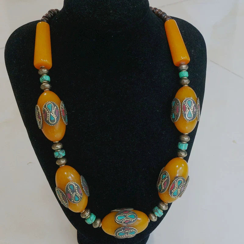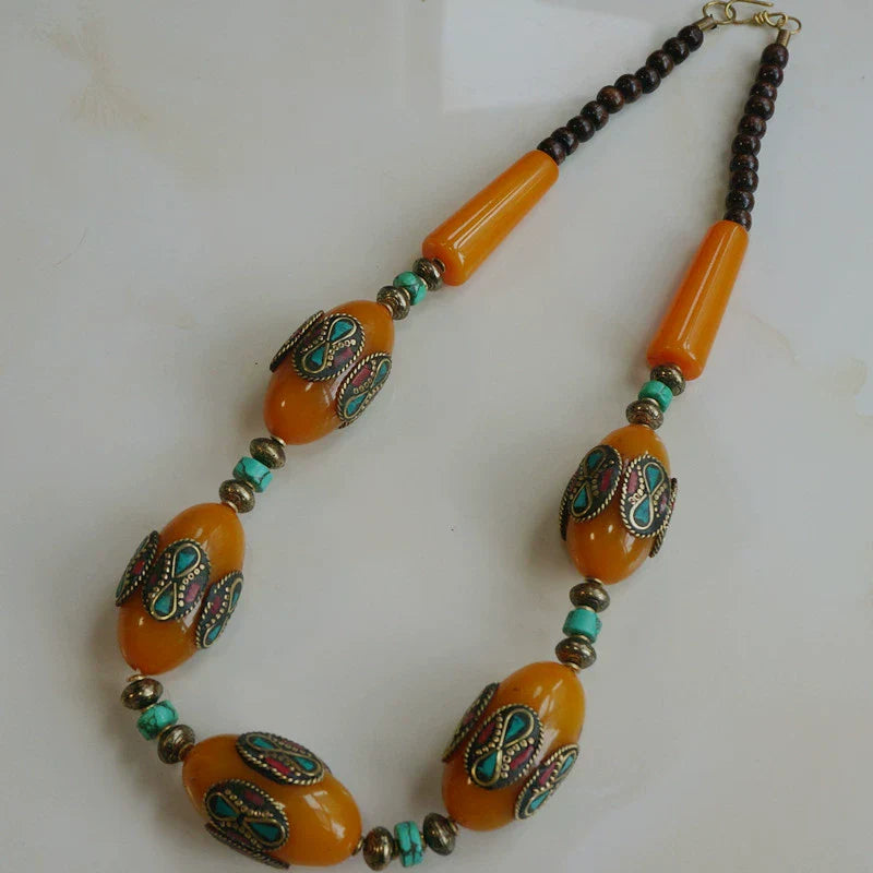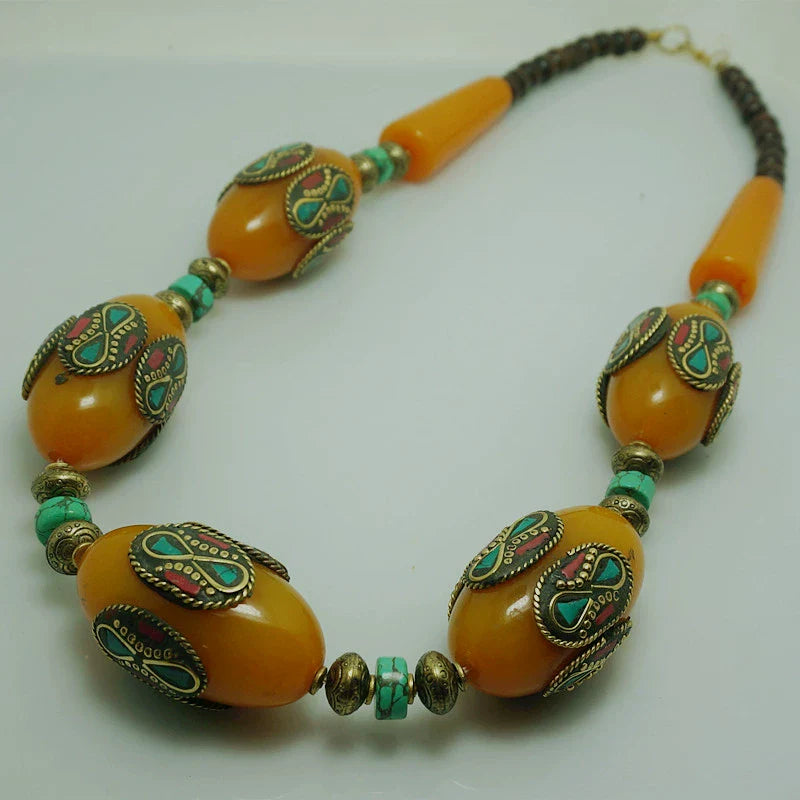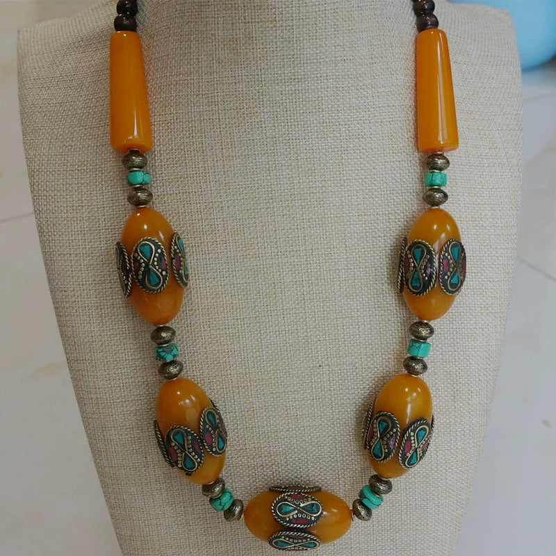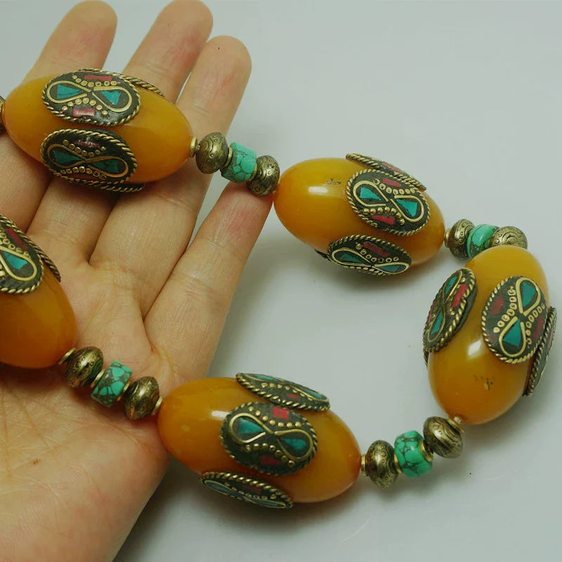 Tibetan Ethnic Style Tibetan Clothing Accessories, Imitation Beeswax Oversized Nepalese Copper Beads Handmade Short Necklaces, Sweater Chains