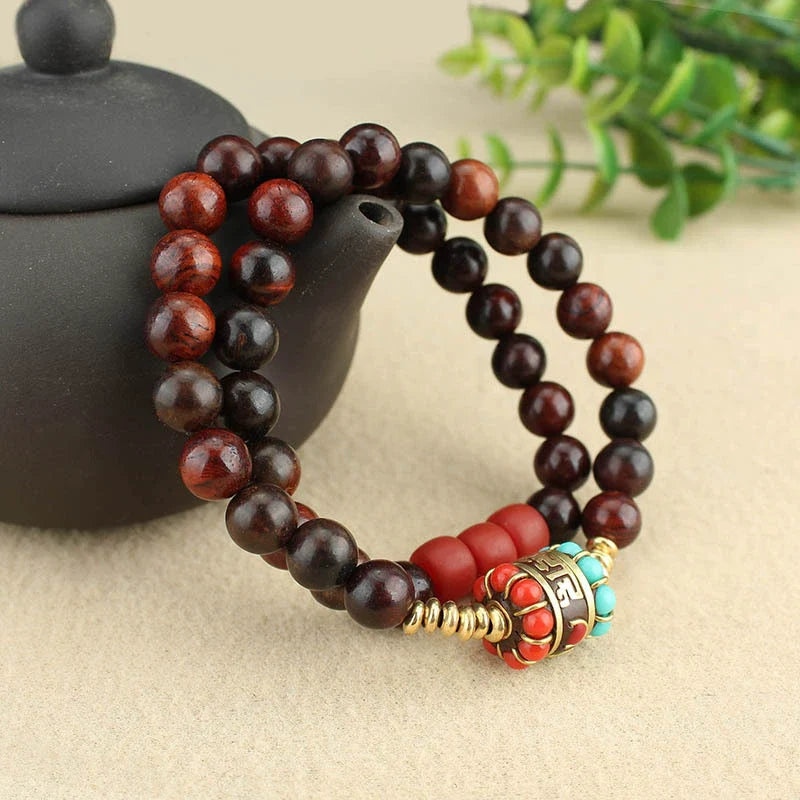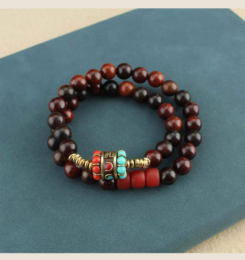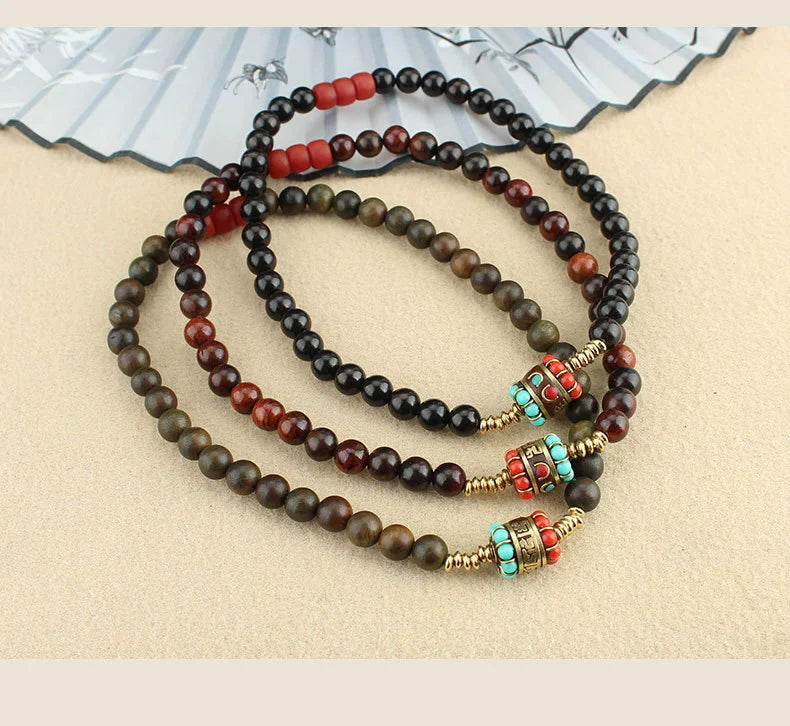 Tibetan Nepalese Green Sandalwood Bracelet Men's and Women's Retro Ethnic Style Natural Sour Branch Multi-circle Buddha Bead Bracelet