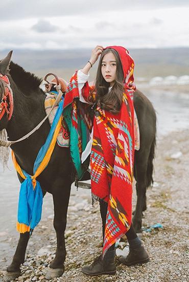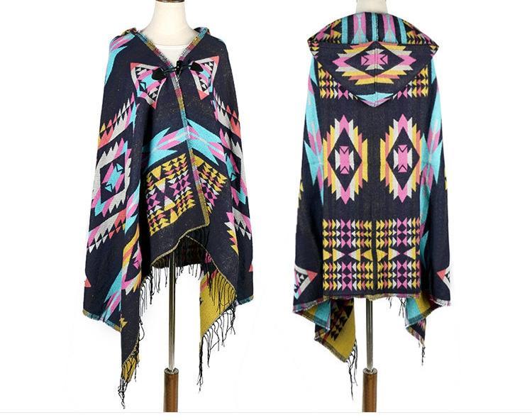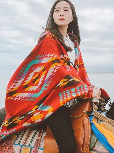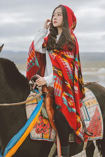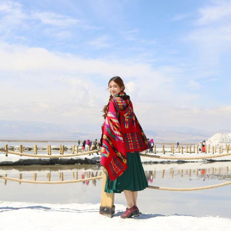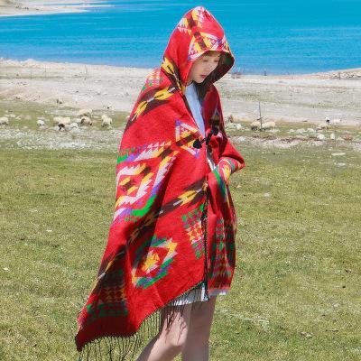 Tibetan Nepalese National Cloak Shawl Thick Hooded bohemian Scarf