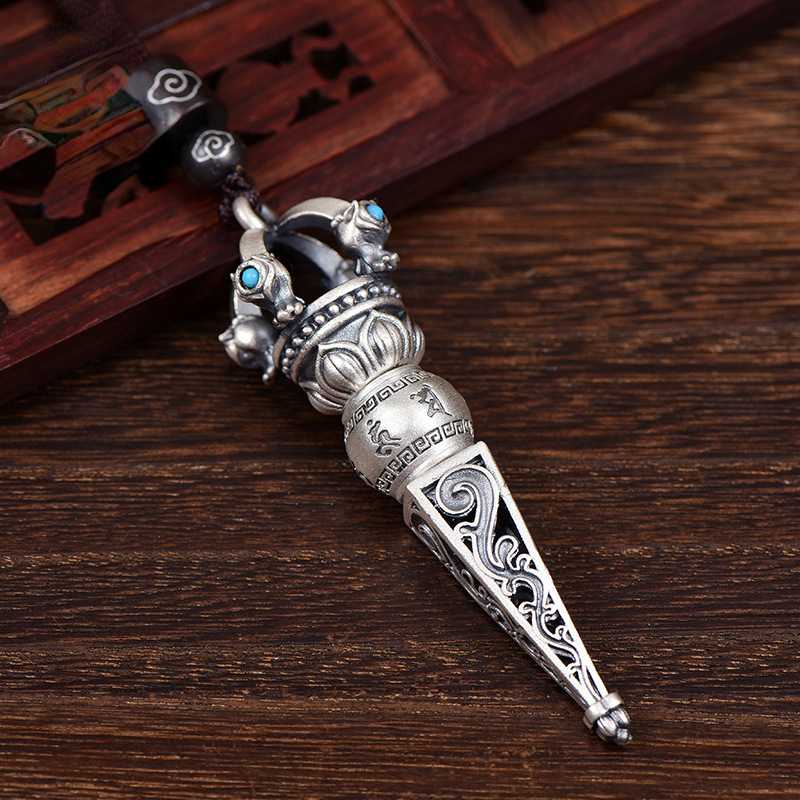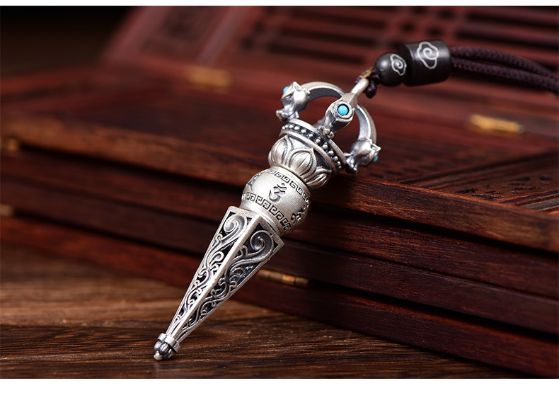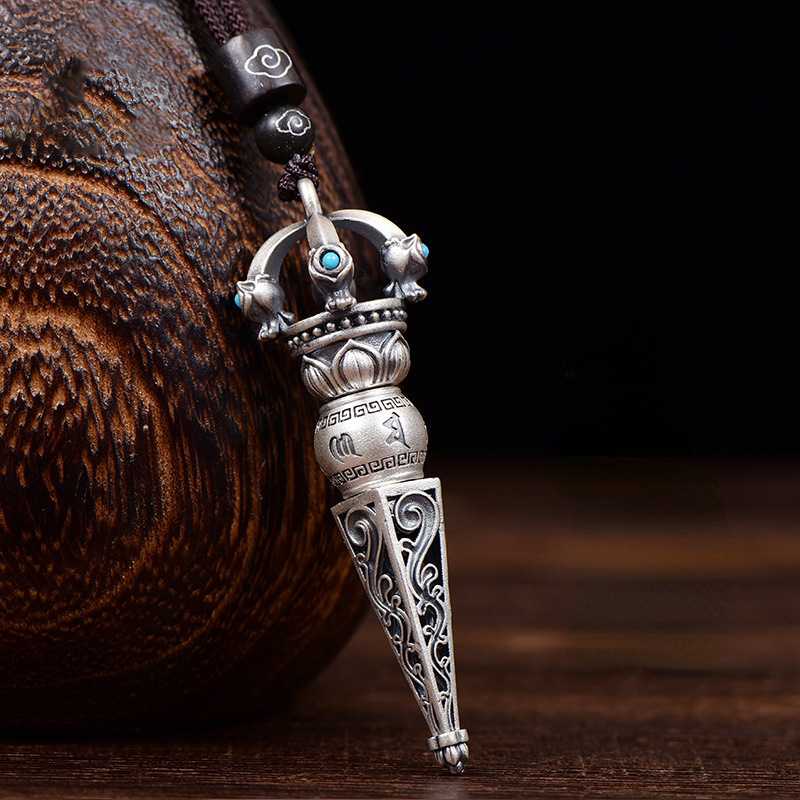 Six Character Mantra Diamond Pestle Pendant, Demon Slaying Pestle Retro Vintage Men's and Women's Necklace