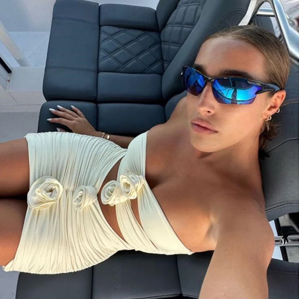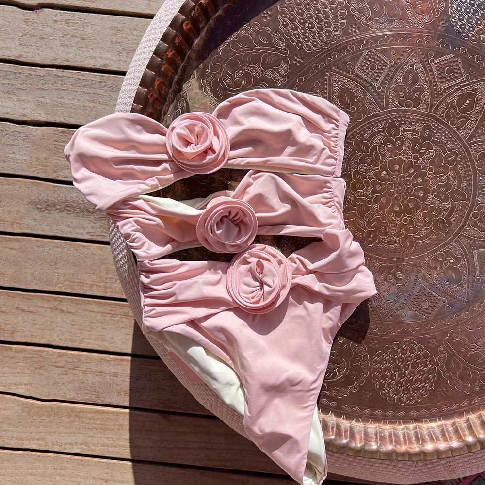 Two-Pieces Women Floral Lace Up 2024 Push-Up Padded Bra White Swimsuit Swimwear Bathing Suit Beachwear Monokini Female