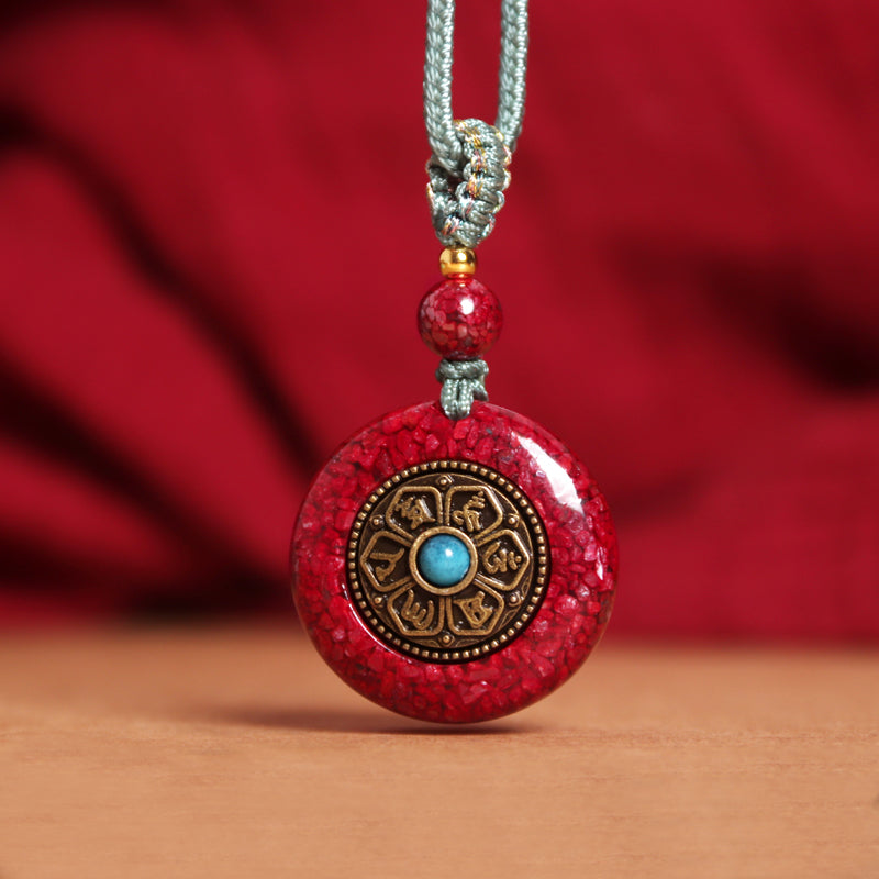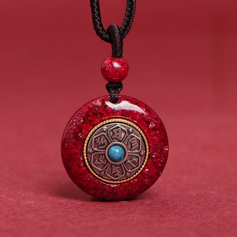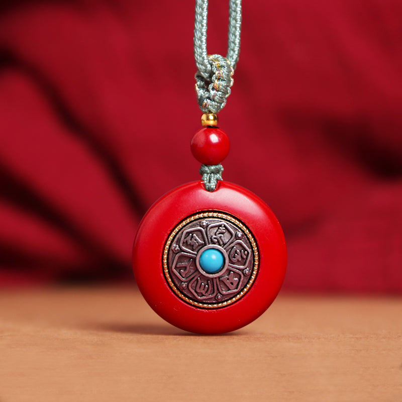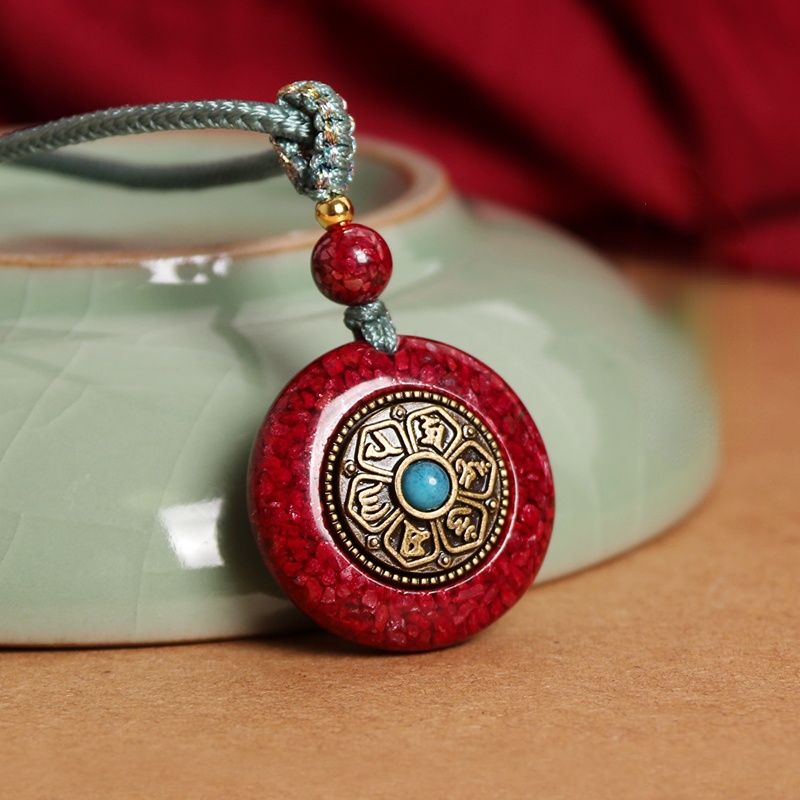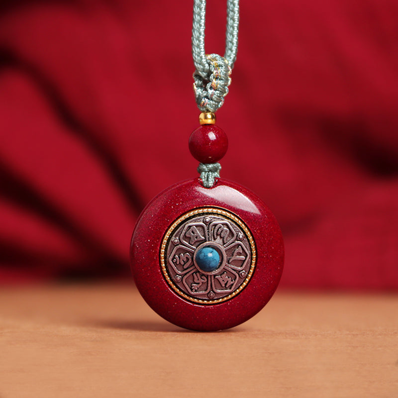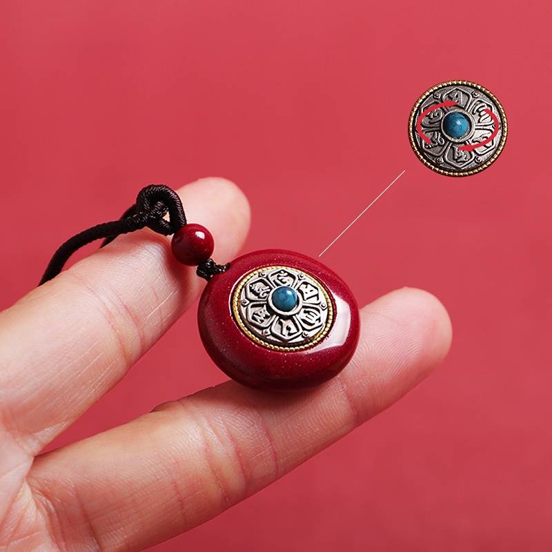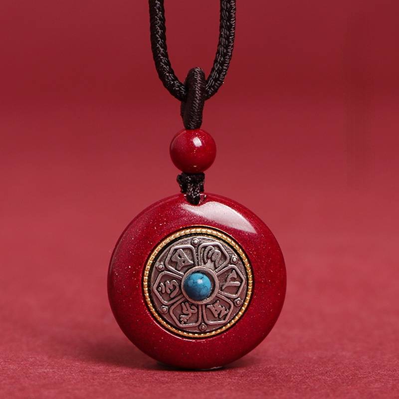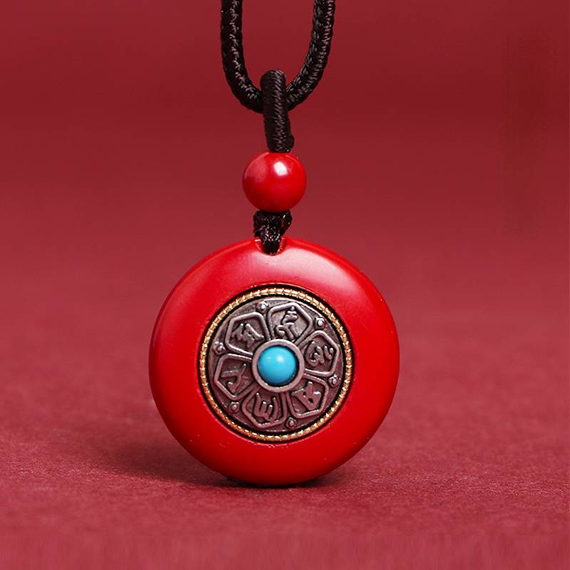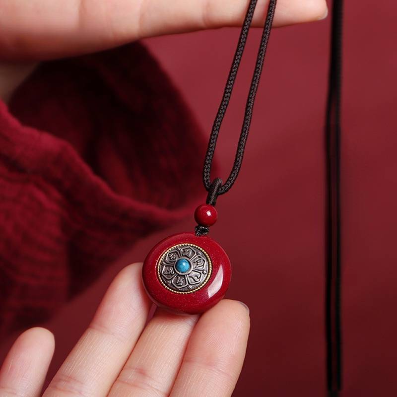 Vermilion Pendant Women's Safety Buckle Six-syllable mantra Pendant NecklaceMaterial:cinnabar, Alloy, Rope, stone