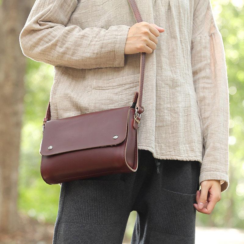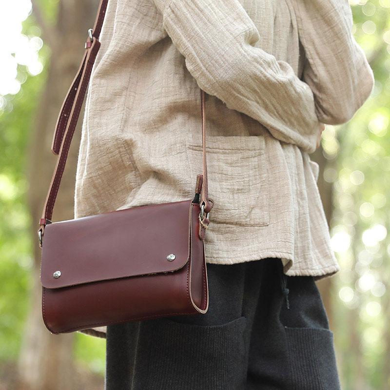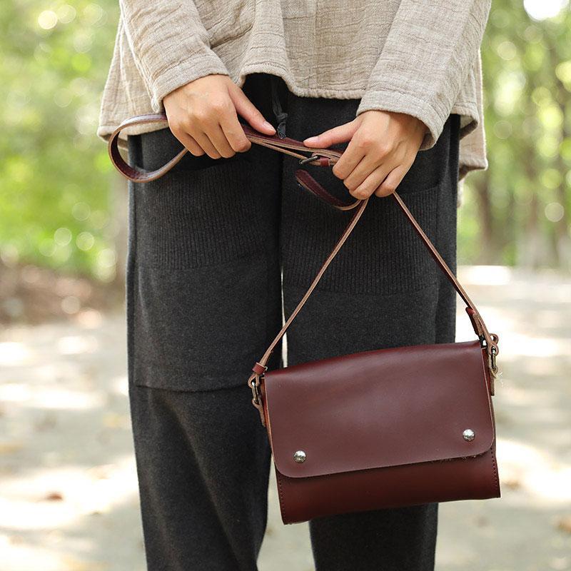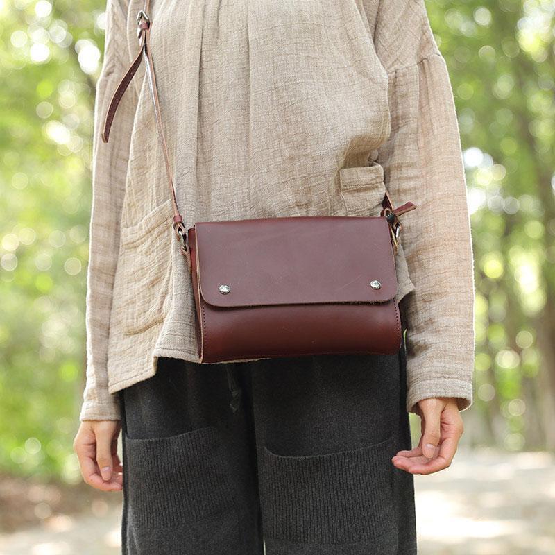 Vintage Cowhide Two Magnetic Buckles Red Brown Shoulder Bag For Women