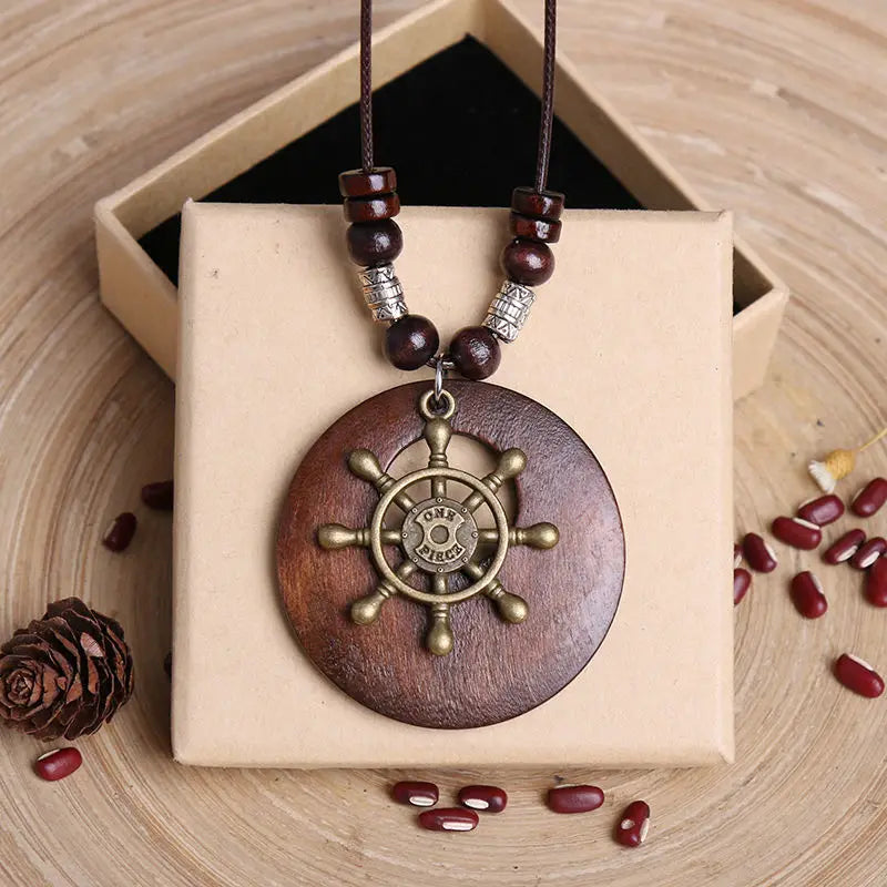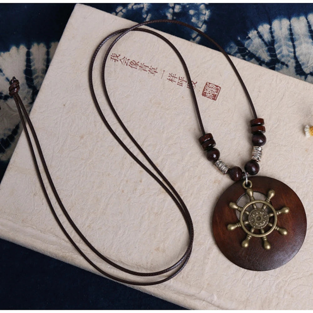 Vintage Wooden Owl Leaf Pendant Necklaces Boho Ethnic Style Metal Hollow leaves Necklaces Long Wax Rope Chain For Women Gifts