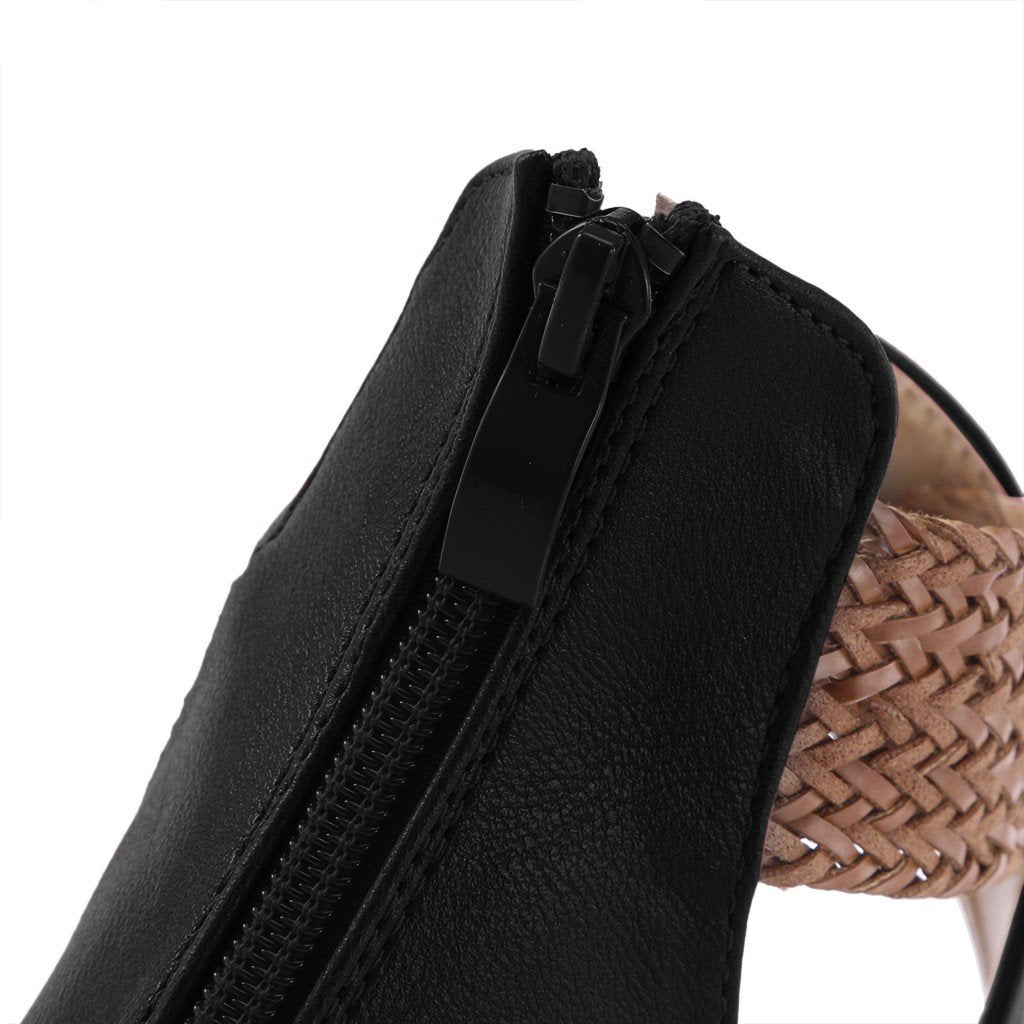 Fashion New Fish Mouth Leather Canvas Women Weave Wedge Heel Shoes Zipper Sandals Casual Beach Sandals Roman Shoes
